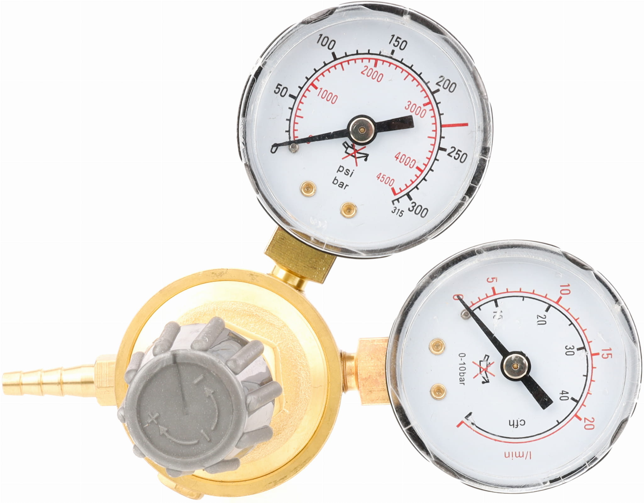 Posiada dwa manometry pozwalające na bieżąco śledzić parametry pracy oraz śrubę nastawną. Umożliwia to dostosowanie parametrów do wybranej metody spawania.