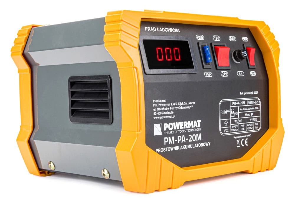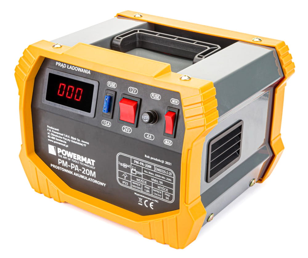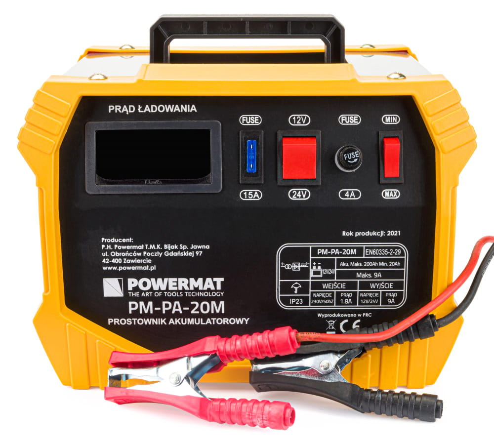 Wysokiej jakości automatyczny i precyzyjny prostownik akumulatorowy POWERMAT. Świetnie sprawdza się w profesjonalnych serwisach i warsztatach samochodowych jak i w przydomowych garażach. Urządzenie może ładować prądem o napięciu 12V i 24V.