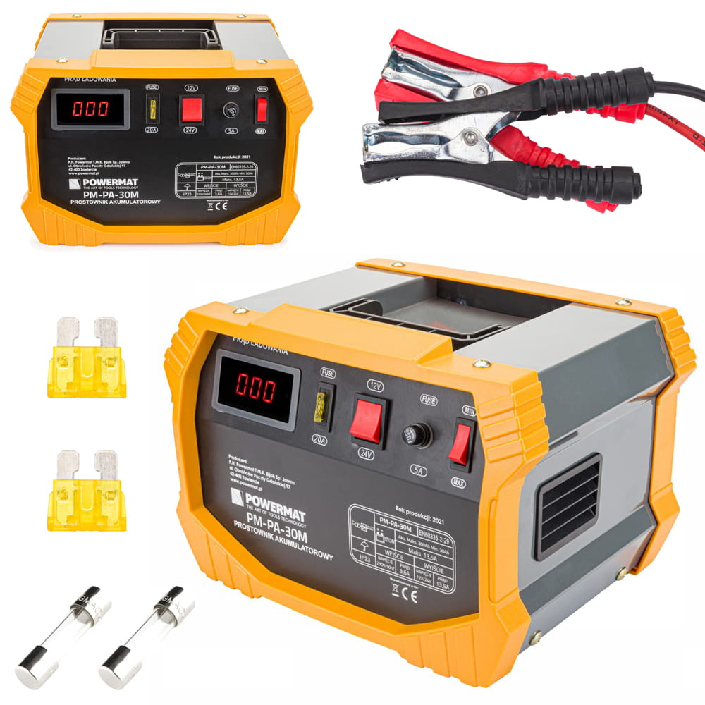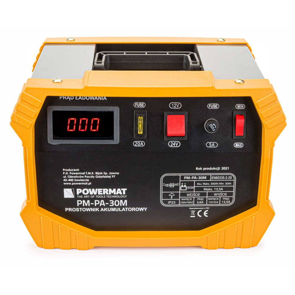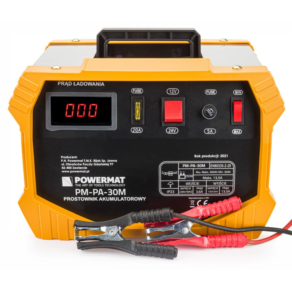 Wysokiej jakości automatyczny i precyzyjny prostownik akumulatorowy POWERMAT PM-PA-30M. Świetnie sprawdza się w profesjonalnych serwisach i warsztatach samochodowych jak i w przydomowych garażach. Urządzenie może ładować prądem o napięciu 12V i 24V.