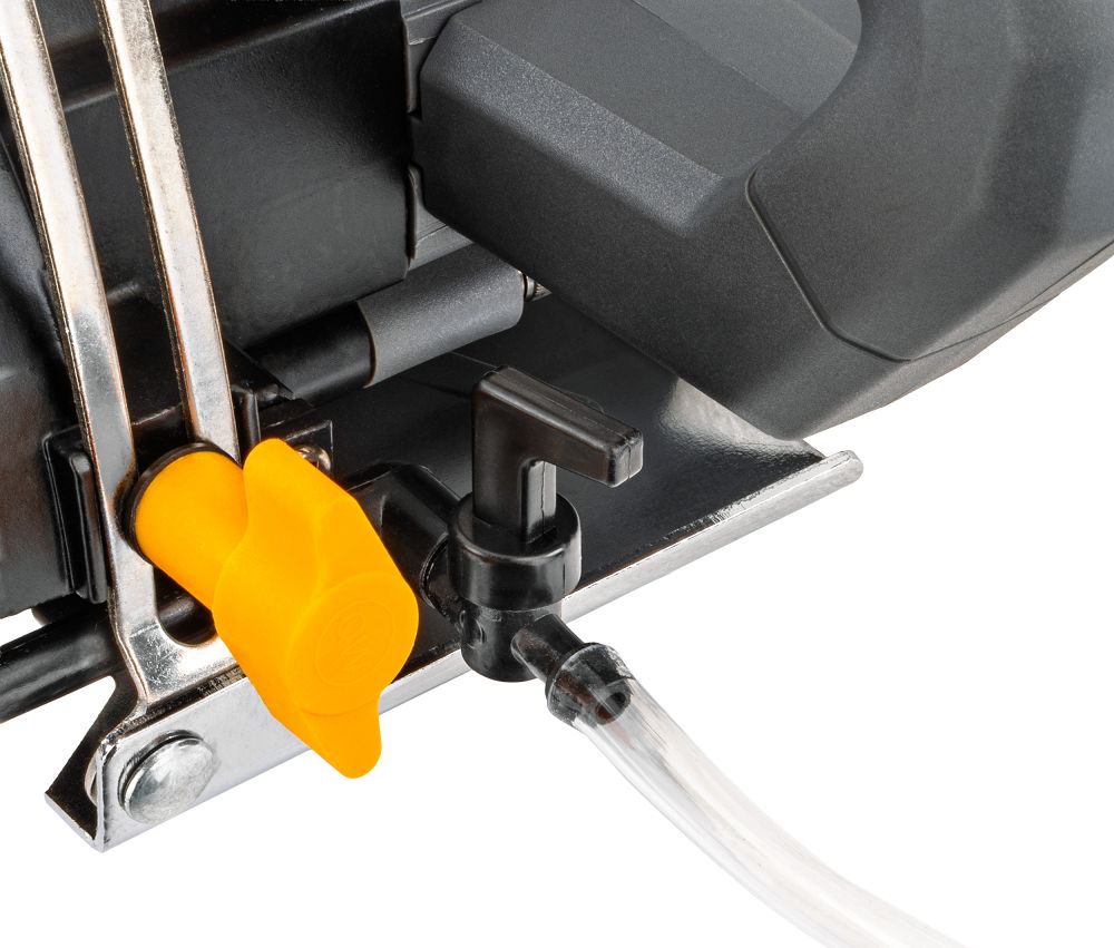 - Praca na sucho i mokro – system nawadniania redukuje pylenie, poprawia chłodzenie tarczy i zwiększa precyzję cięcia.