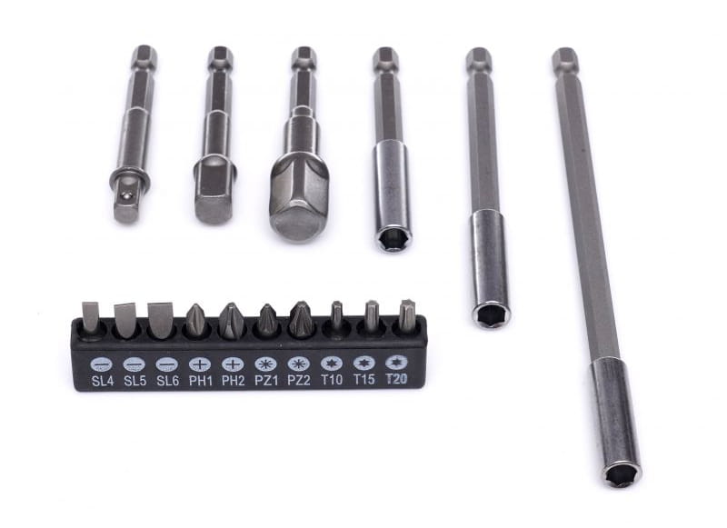 - Typ zestawu: bity, przedłużki i adaptery do wkrętarki