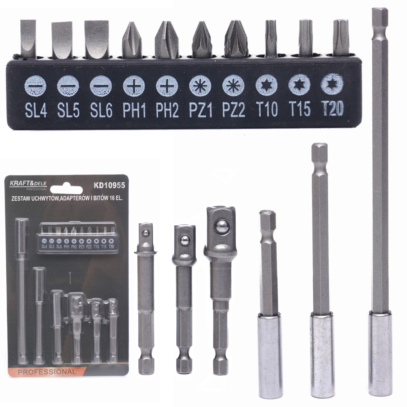 PRZEDŁUŻKI ADAPTERY BITY DO WKRĘTARKI ZESTAW 16EL