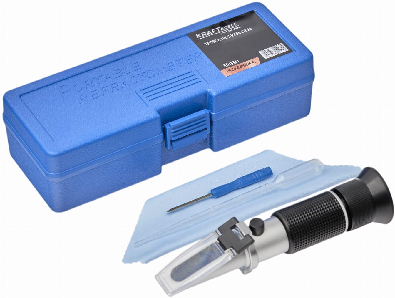 Niezbędny w każdym warsztacie refraktometr firmy KRAFT&DELE jest urządzeniem pozwalającym określić właściwości fizyczne cieczy za pomocą pomiaru współczynnika załamania światła na granicy ośrodków.