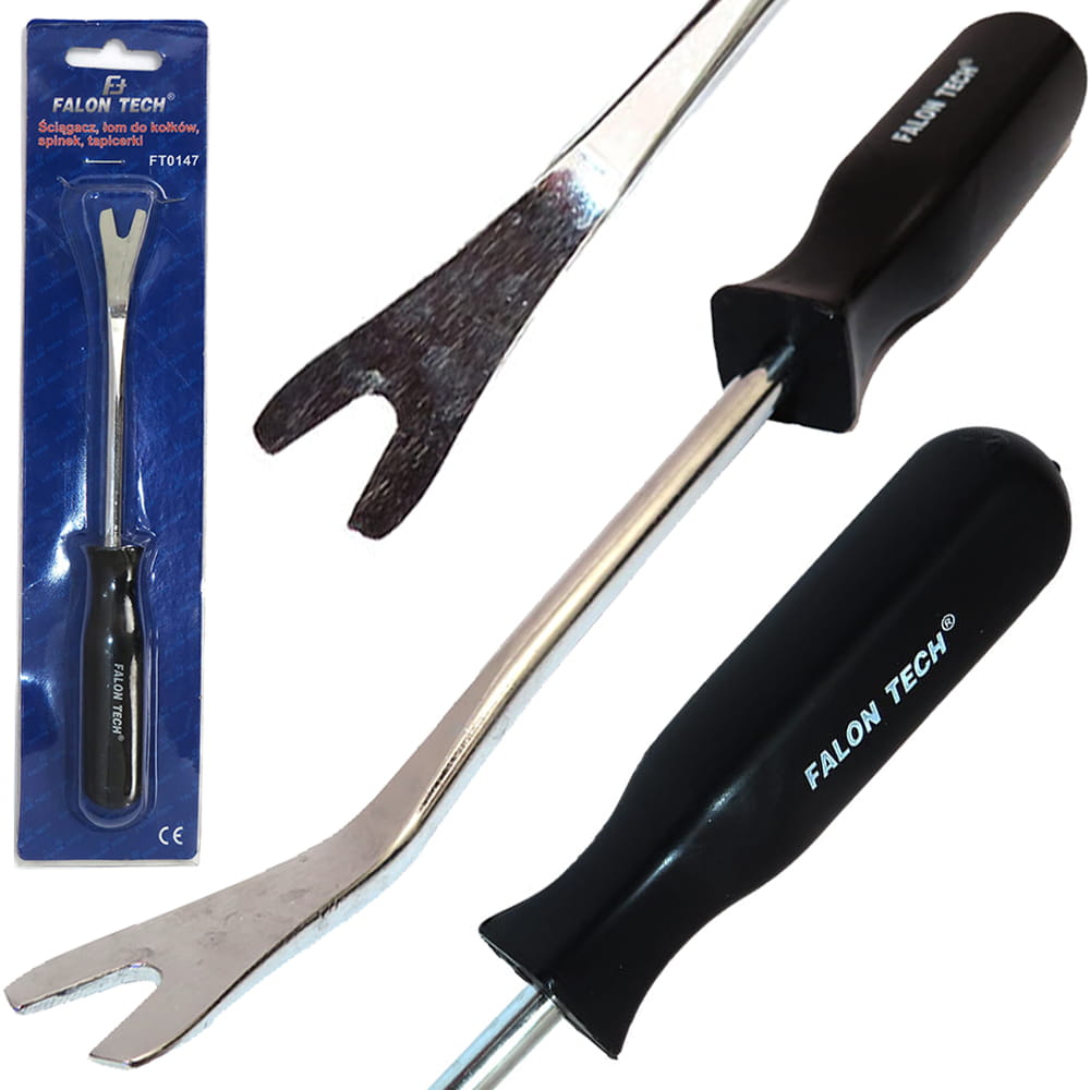 Narzędzie jest zaprojektowane tak, aby umożliwić łatwe i precyzyjne usuwanie spinek, kołków i zatrzasków bez ryzyka uszkodzenia tapicerki lub elementów plastikowych.
