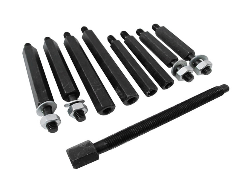 Zestaw ściągaczy i odklejaczy przeznaczony jest do demontażu elementów osadzonych na wcisk, takich jak łożyska, koła zębate czy koła pasowe. Narzędzie umożliwia sprawne przeprowadzenie prac serwisowych bez konieczności ingerencji w konstrukcję maszyny, co znacząco ogranicza ryzyko uszkodzeń i skraca czas naprawy.