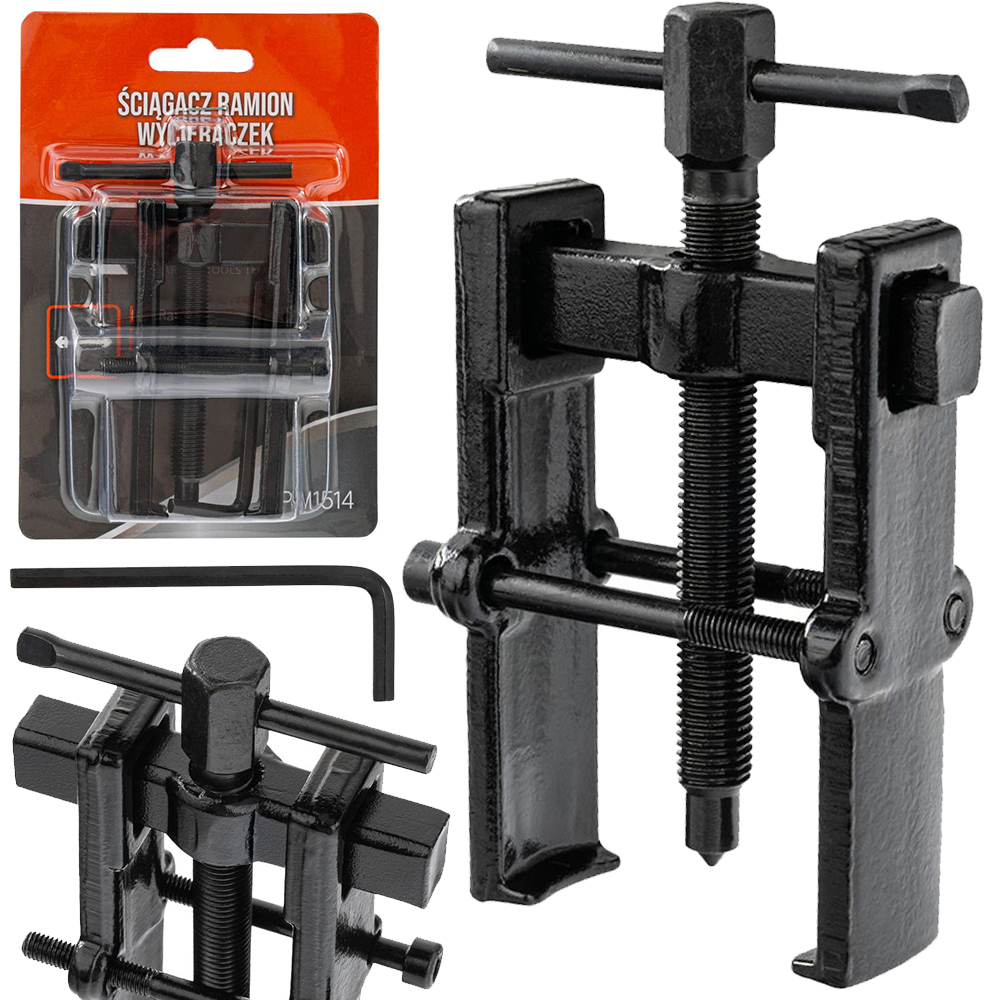 Dwuramienny ściągacz uniwersalny przeznaczony jest do precyzyjnego demontażu elementów osadzonych na wałkach lub trzpieniach, takich jak wycieraczki, łożyska, tuleje czy klemy akumulatora. Narzędzie ułatwia wykonywanie prac serwisowych i naprawczych zarówno w profesjonalnym warsztacie, jak i podczas samodzielnych napraw w garażu.