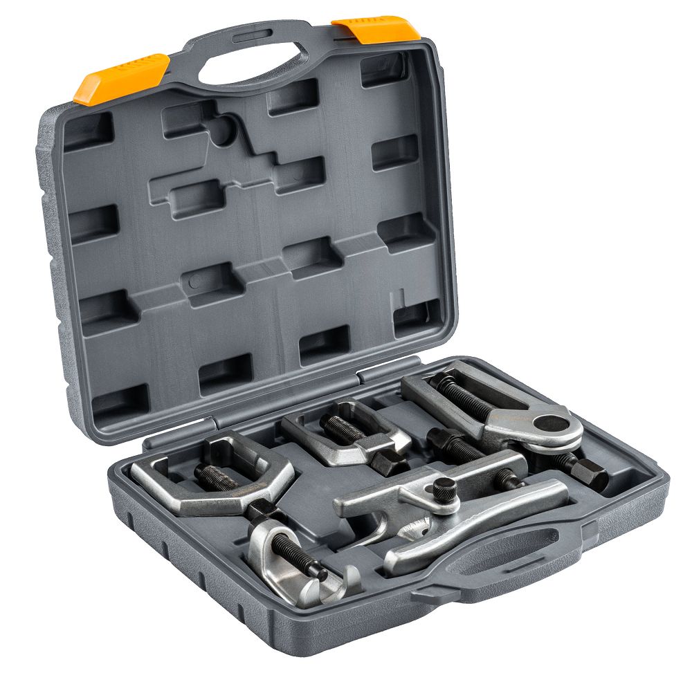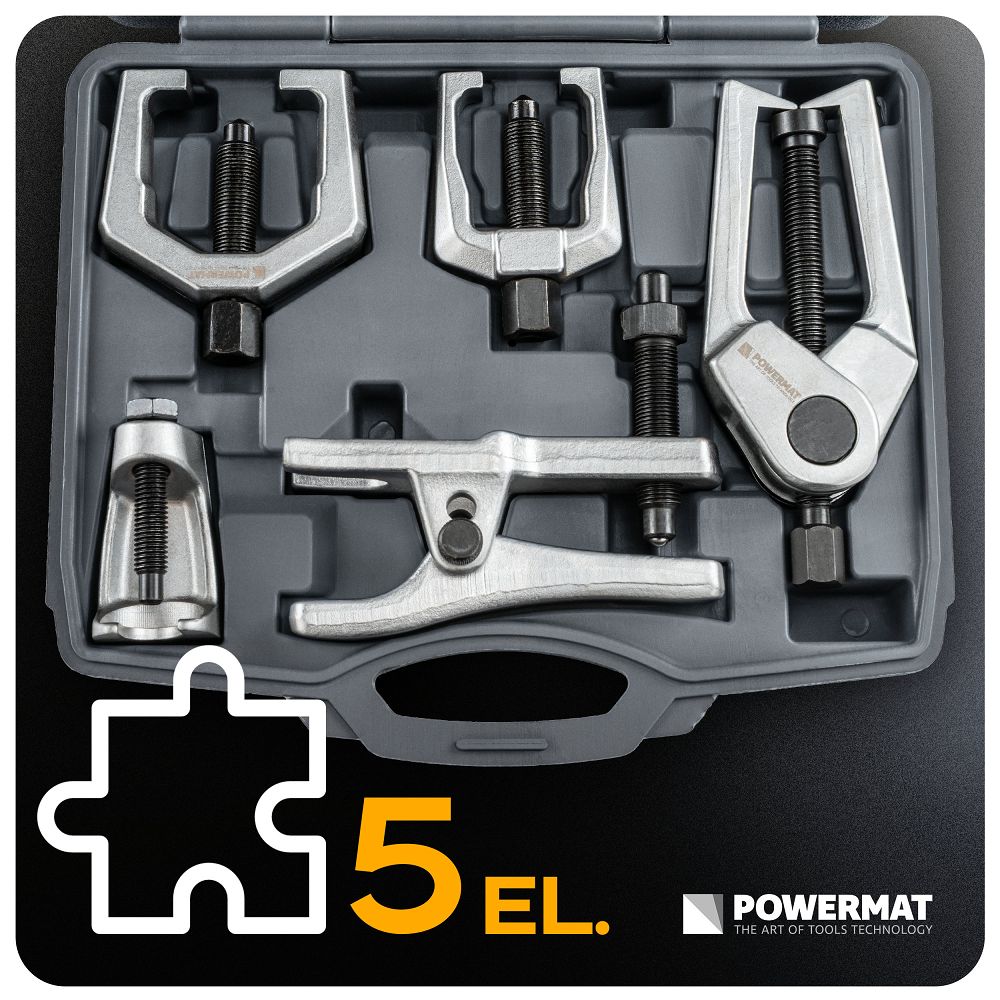 Zestaw przeznaczony jest do demontażu końcówek drążków kierowniczych, sworzni oraz innych elementów układu zawieszenia. Sprawdza się w warsztatach mechanicznych, serwisach samochodowych oraz podczas samodzielnych napraw. Dzięki różnym typom ściągaczy możliwe jest dopasowanie narzędzia do wielu konfiguracji i rozmiarów połączeń.