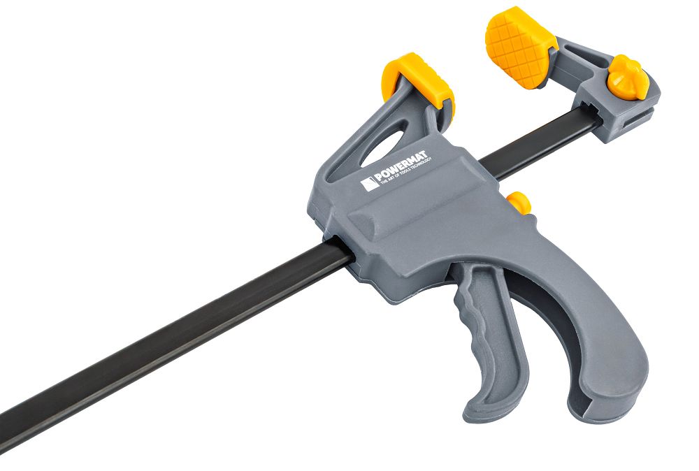 Po zmianie ustawienia ramienia ścisk może pełnić funkcję rozpieraka. Umożliwia to wygodne rozpychanie elementów podczas montażu drzwi, ram, szafek czy konstrukcji skrzynkowych.