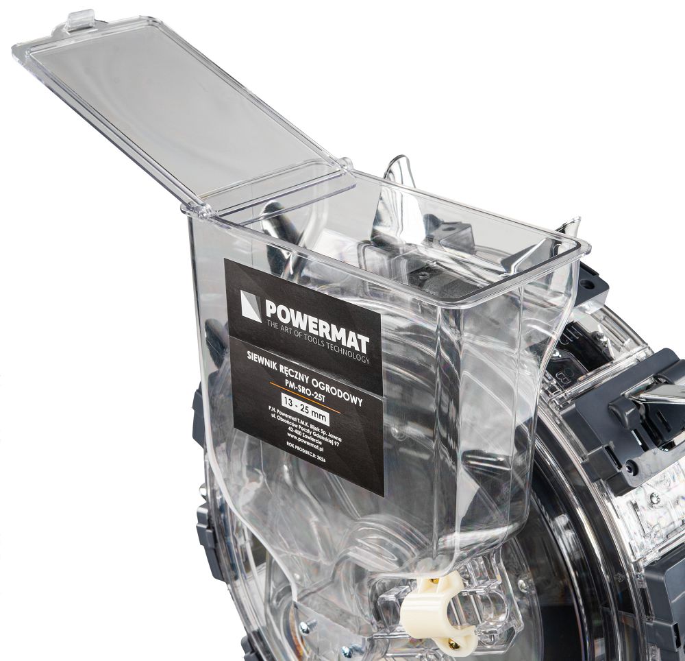 - Duża pojemność zbiornika – 3,7 kg nasion umożliwia dłuższą pracę bez częstego uzupełniania