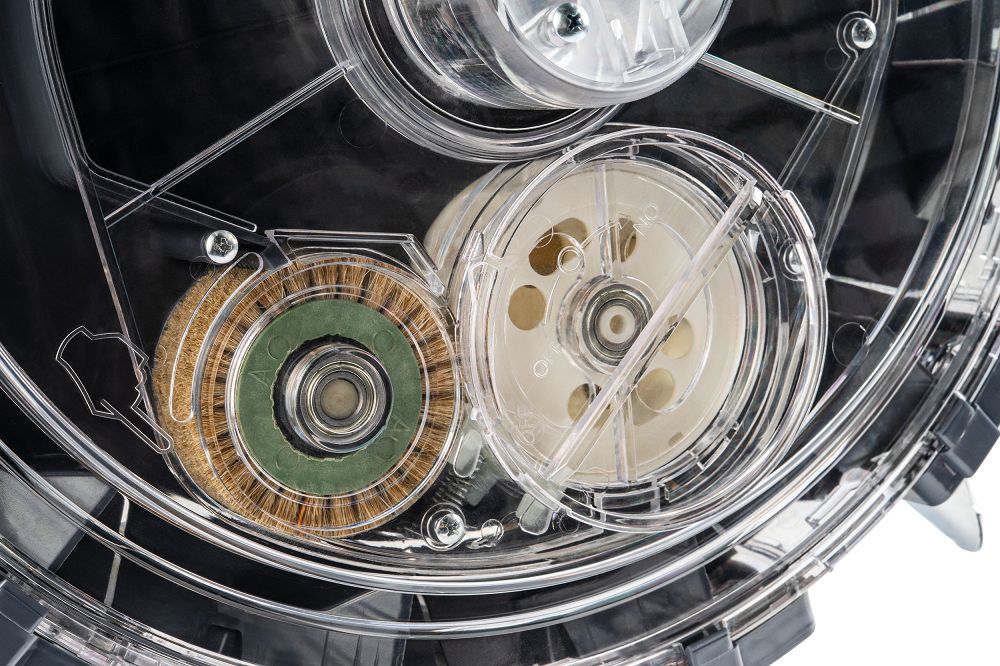 Urządzenie wykorzystuje zaawansowany mechanizm wysiewu oparty na tarczy wysiewającej, szczotce oraz systemie łyżeczek. Takie rozwiązanie umożliwia dokładne pobieranie i odkładanie nasion, ograniczając ryzyko ich uszkodzenia oraz nierównomiernego rozmieszczenia.