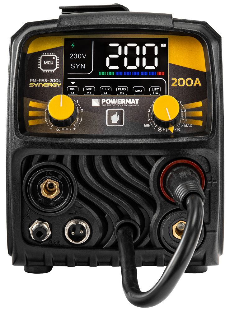 Zastosowanie wyświetlacza LCD umożliwia bieżące monitorowanie parametrów pracy. Funkcja synergii oraz regulacja napięcia i prądu pozwalają na precyzyjne dostosowanie ustawień do rodzaju materiału. Stabilny łuk oraz możliwość pracy w trybie pulse przekładają się na lepszą jakość i estetykę spoin.