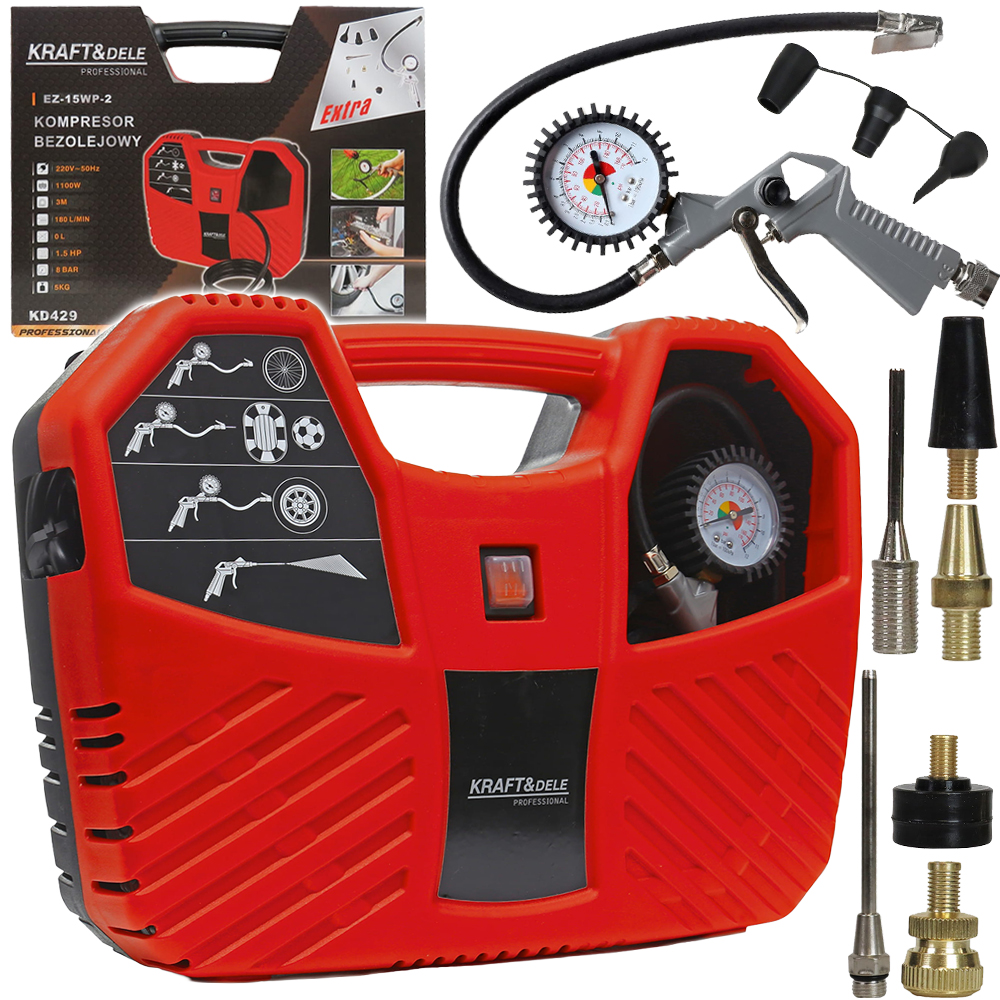 SPRĘŻARKA KOMPRESOR BEZOLEJOWY SPRĘŻARKA POWIETRZA 1100W 8bar + AKCESORIA