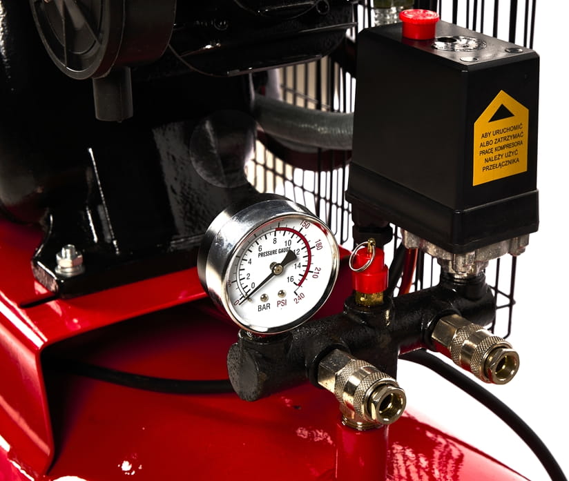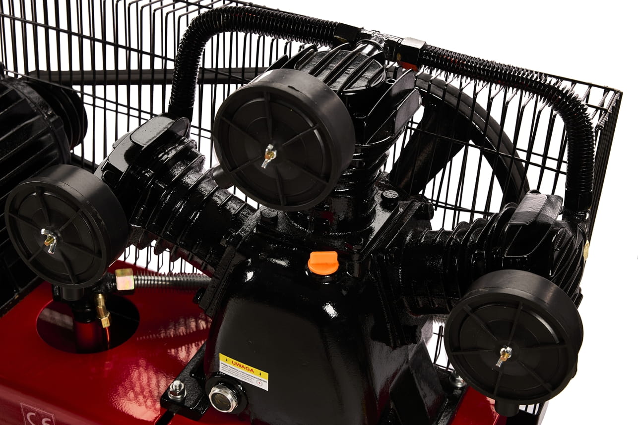 - Napęd sprężarki: Silnik na podwójnym pasie