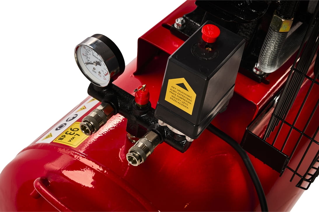 - Solidne kółka i uchwyt transportowy – ułatwiają przemieszczanie kompresora