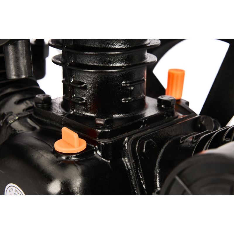 Potrójny układ tłoków zwiększa efektywność kompresji i pozwala na pracę w bardziej wymagających warunkach.