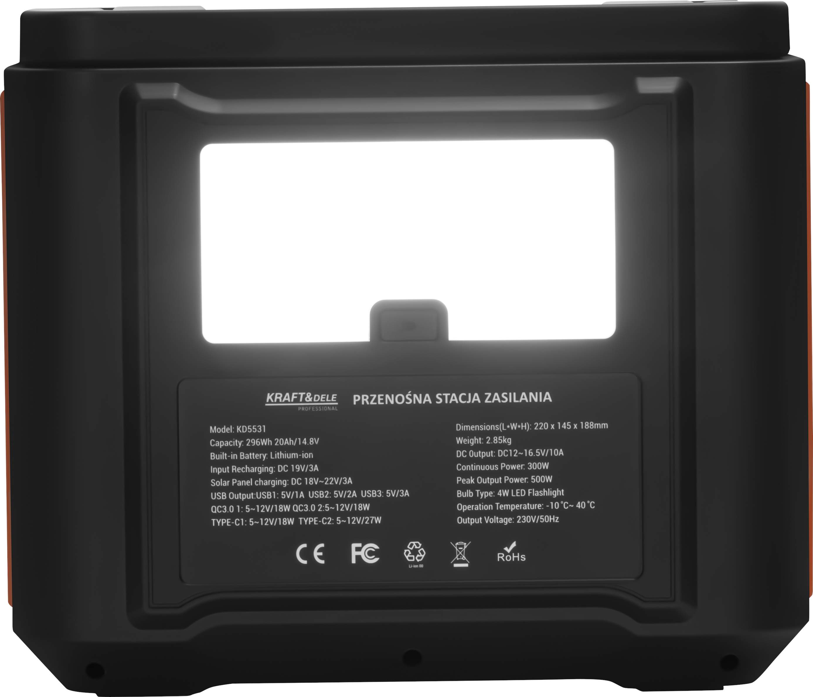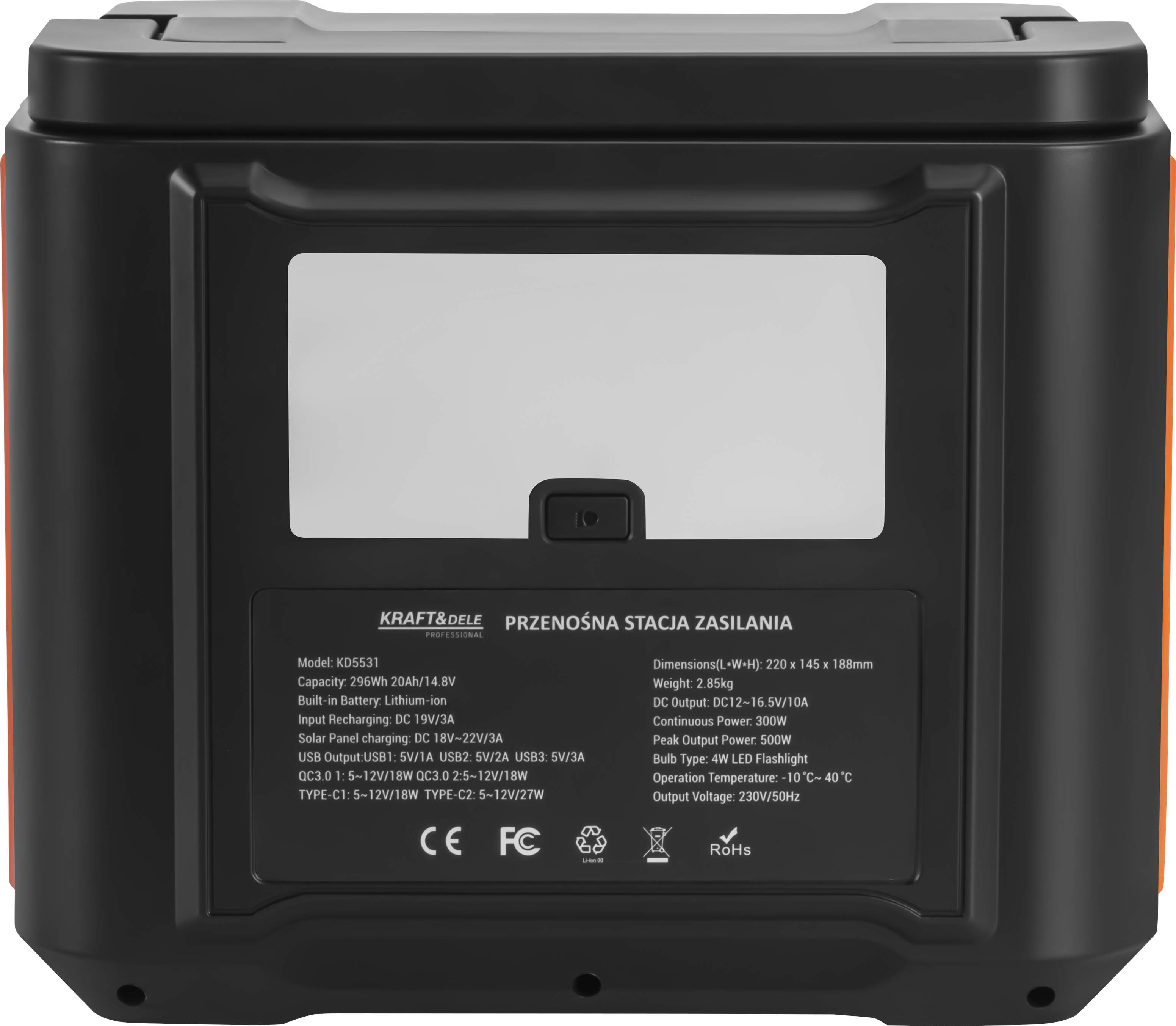 STACJA ZASILANIA ENERGII MOBILNA ŁADOWARKA POWERBANK 296Wh 20Ah/14,8V 500W