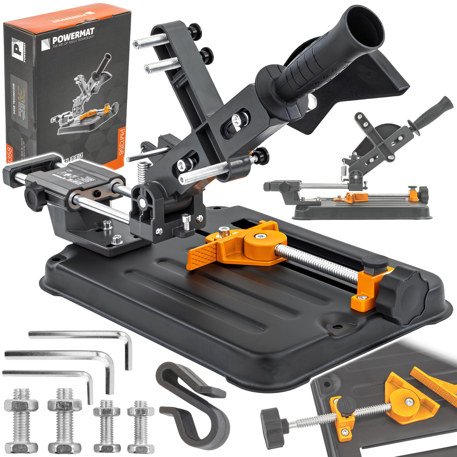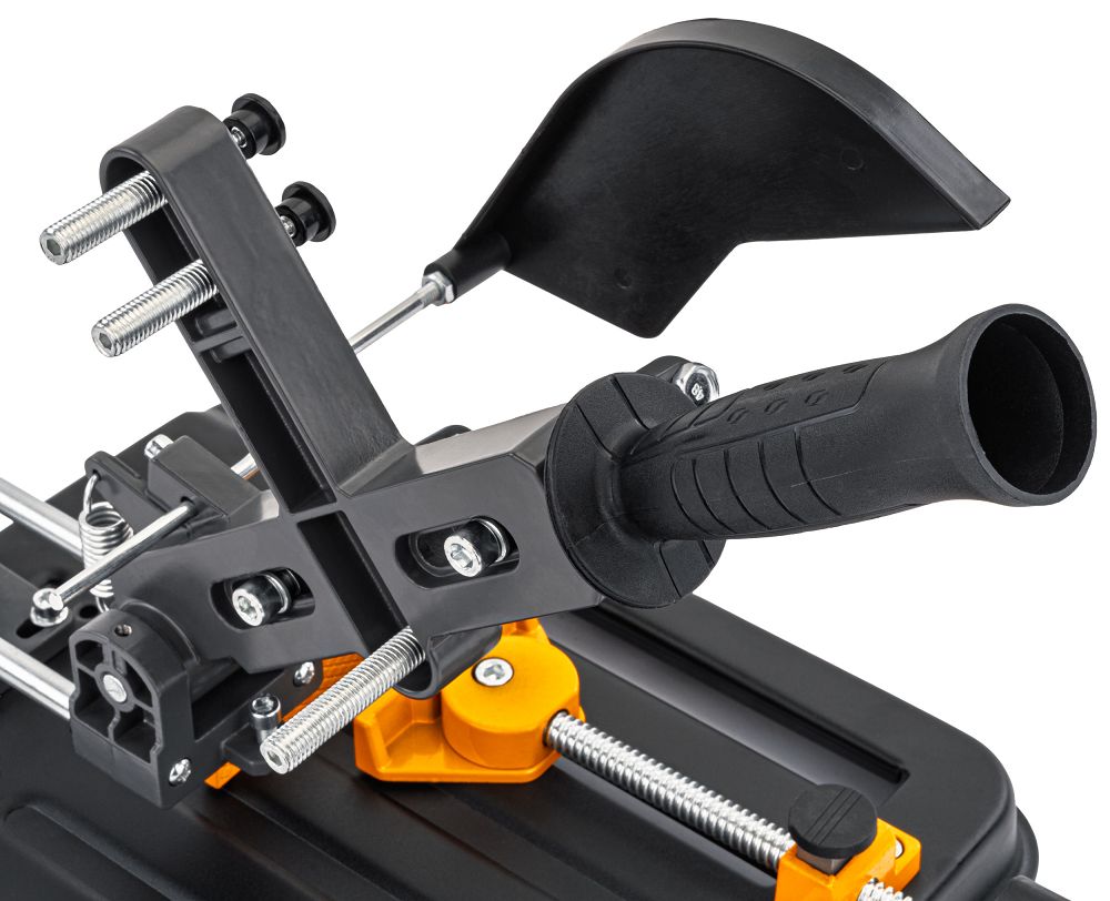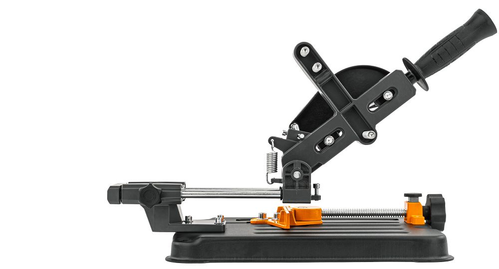 Praktyczne i solidne akcesorium warsztatowe, które przekształca klasyczną szlifierkę w funkcjonalną przecinarkę. Konstrukcja oparta na stabilnej, stalowej podstawie odlewanej ciśnieniowo zapewnia pewne mocowanie urządzenia do blatu roboczego, a płynnie pracująca prowadnica umożliwia precyzyjne i powtarzalne cięcia. Dzięki regulowanemu imadłu oraz osłonie tarczy operator zyskuje komfort i bezpieczeństwo pracy, a kompaktowe wymiary stojaka sprawiają, że jest łatwy w przechowywaniu i transporcie.