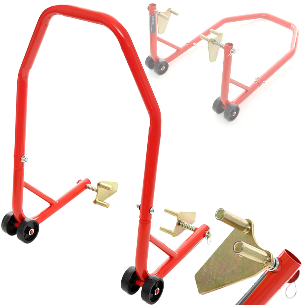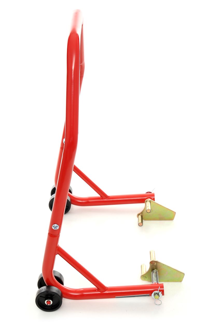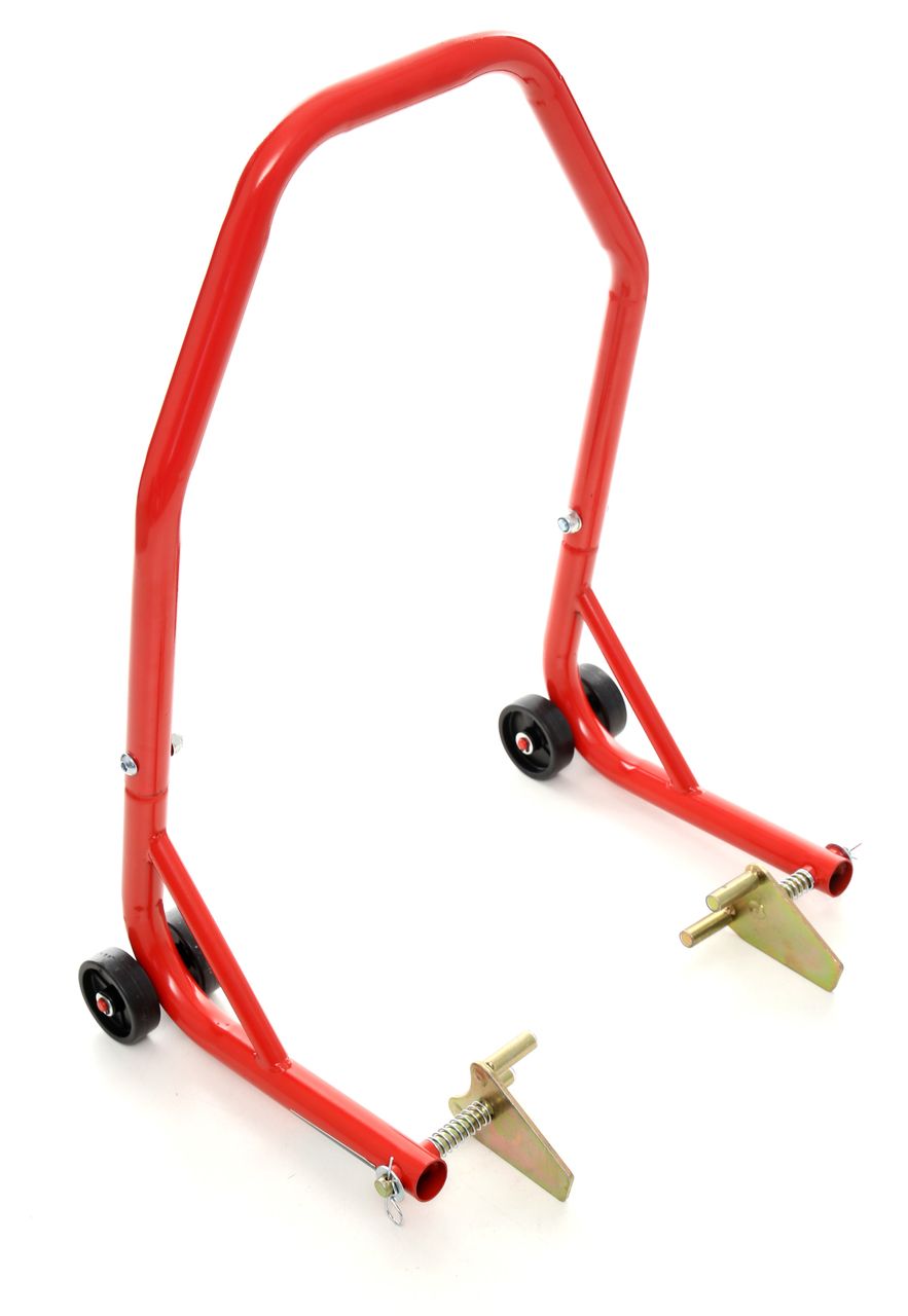 Wsporniki do podnoszenia przednich kół motocykla. Dzięki podparciu pojazdu ludzie mogą łatwo czyścić i konserwować rower w domu lub w warsztacie naprawczym i mogą być używane razem lub osobno. Umożliwia ustawienie motocyklu (np. podczas naprawy) w wygodnej pozycji nie obciążając opon. Kompatybilny z większością modeli marek. Przydatny w każdym garażu oraz warsztacie.