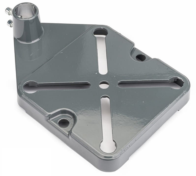 Podstawa została wyposażona w otwory umożliwiające montaż do blatu oraz rowki pozwalające na instalację imadła. Takie rozwiązanie zwiększa funkcjonalność stanowiska pracy i umożliwia lepsze unieruchomienie obrabianego materiału.