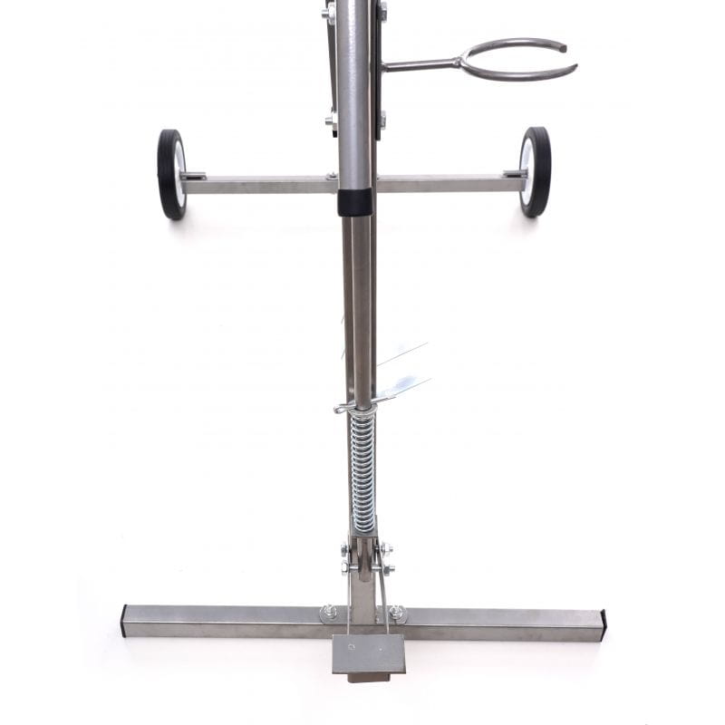 Dodatkowo duże, solidne koła ułatwiają transport stojaka w obrębie warsztatu, a blokady kół zapewniają stabilne ustawienie podczas pracy. Konstrukcja została zaprojektowana tak, aby umożliwić szybki montaż i prostą obsługę, co przekłada się na wygodę użytkowania w codziennej pracy.