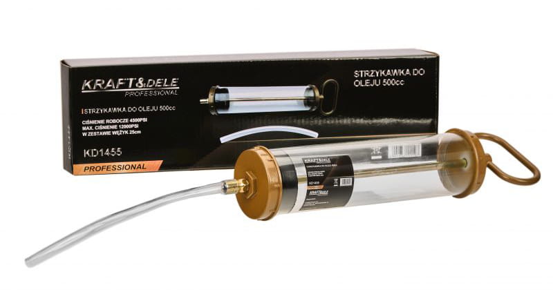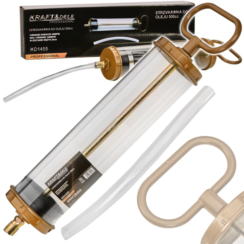 Ręczna strzykawka do oleju o pojemności 500 ml to praktyczne narzędzie przeznaczone do precyzyjnego wstrzykiwania oraz odsysania płynów eksploatacyjnych z trudno dostępnych miejsc. Sprawdza się szczególnie podczas prac serwisowych przy skrzyniach biegów, mostach napędowych oraz innych podzespołach wymagających dokładnego dozowania oleju.