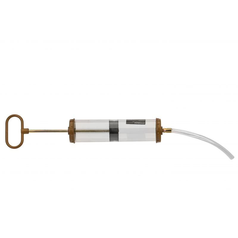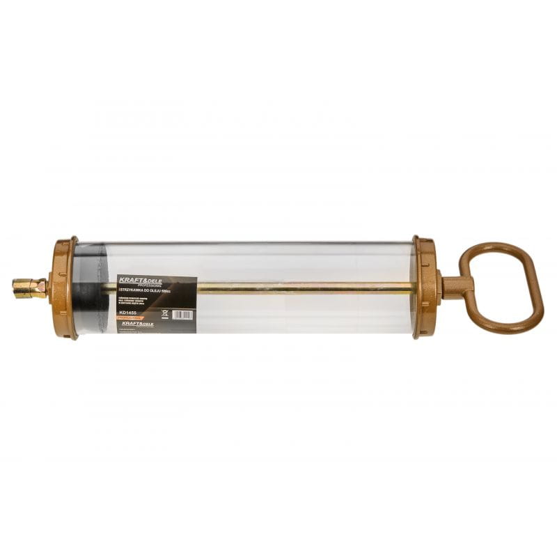 Narzędzie zostało zaprojektowane z myślą o wygodzie i trwałości. Duża rączka zapewnia pewny chwyt oraz umożliwia płynną pracę nawet przy większym oporze cieczy. Przezroczysty cylinder ułatwia kontrolę procesu, a odpowiednio dobrane wymiary gwarantują komfort użytkowania w różnych warunkach warsztatowych.