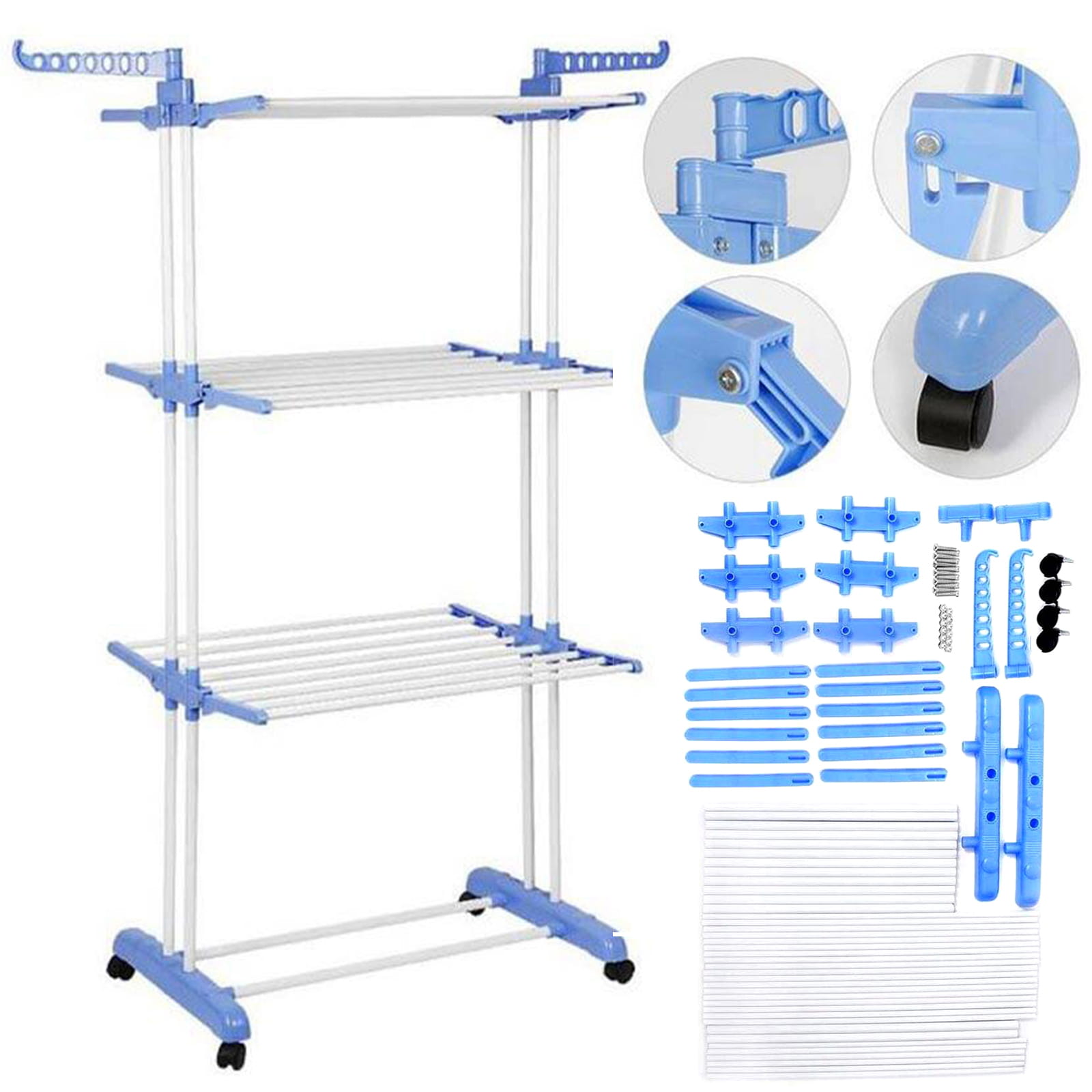 - Suszarka piętrowa na kółkach będzie niezastąpionym pomocnikiem każdego, kto często pierze duże ilości ubrań.