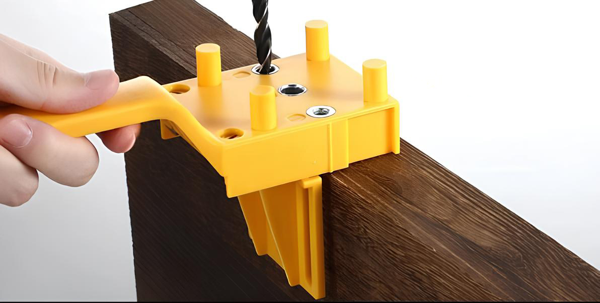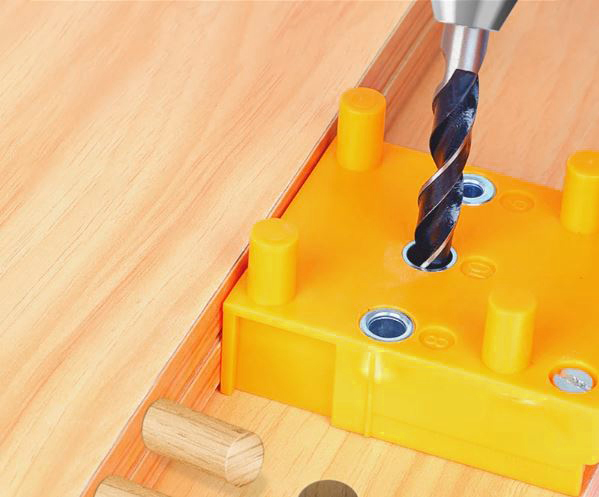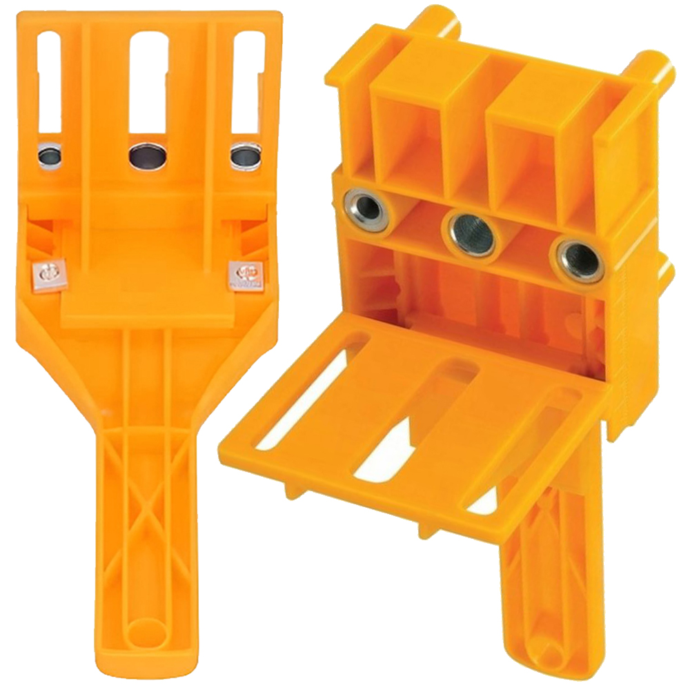 Narzędzie umożliwia jednoczesne nawiercanie dwóch części, co zapewnia idealne dopasowanie kołków i wysoki poziom dokładności. Doskonale sprawdzi się przy wykonywaniu połączeń typu „E” oraz „L”, często stosowanych w meblarstwie i stolarstwie.