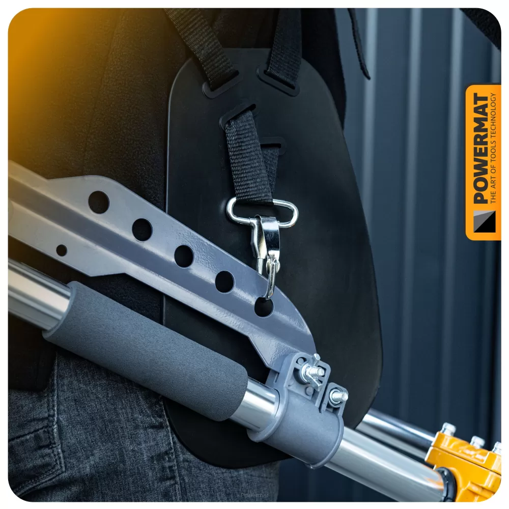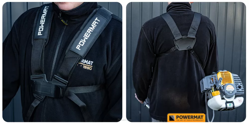 Dwuramienne szelki nośne POWERMAT to niezbędny element wyposażenia podczas prac ogrodowych. Znacznie zwiększają komfort używania kosy spalinowej szczególnie podczas wielkogodzinnej pracy.