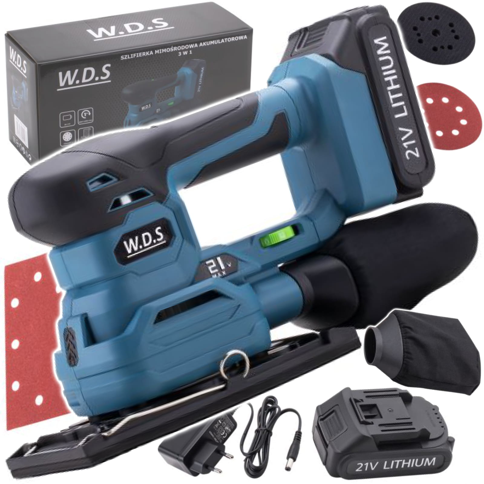 SZLIFIERKA AKUMULATOROWA MIMOŚRODOWA OSCYLACYJNA WIELOFUNKCYJNA 3w1 3Ah 21V
