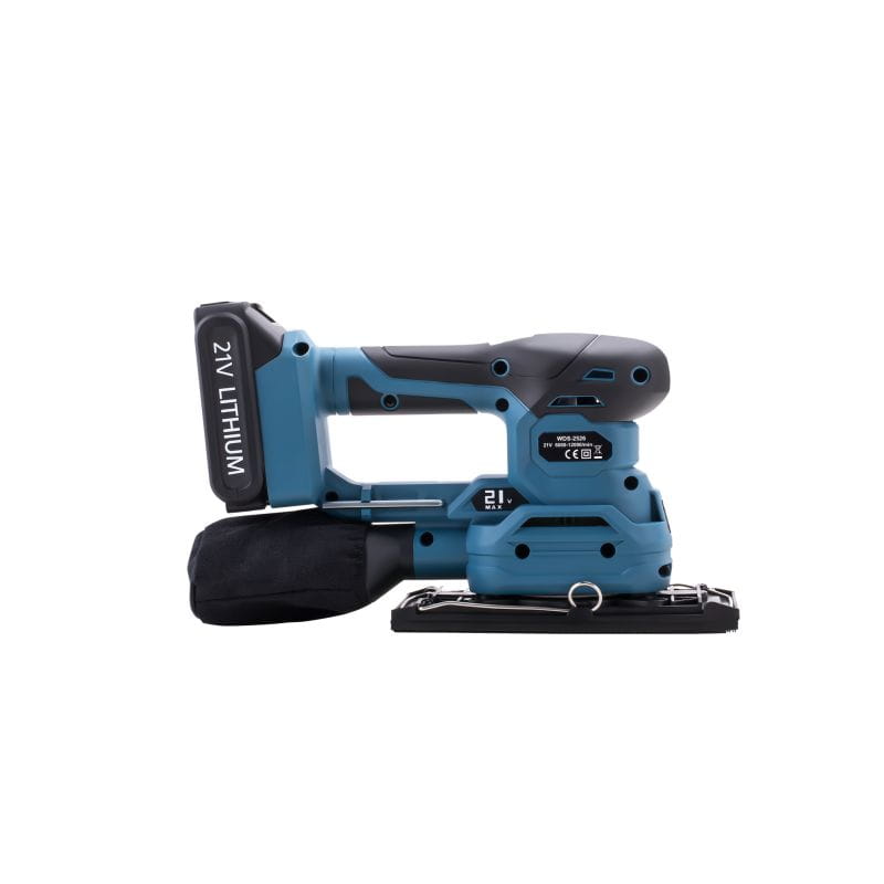 - Szlifierka zasilana jest akumulatorowo 21V 3Ah przez co możemy zabrać ją wszędzie gdzie tylko chcemy.