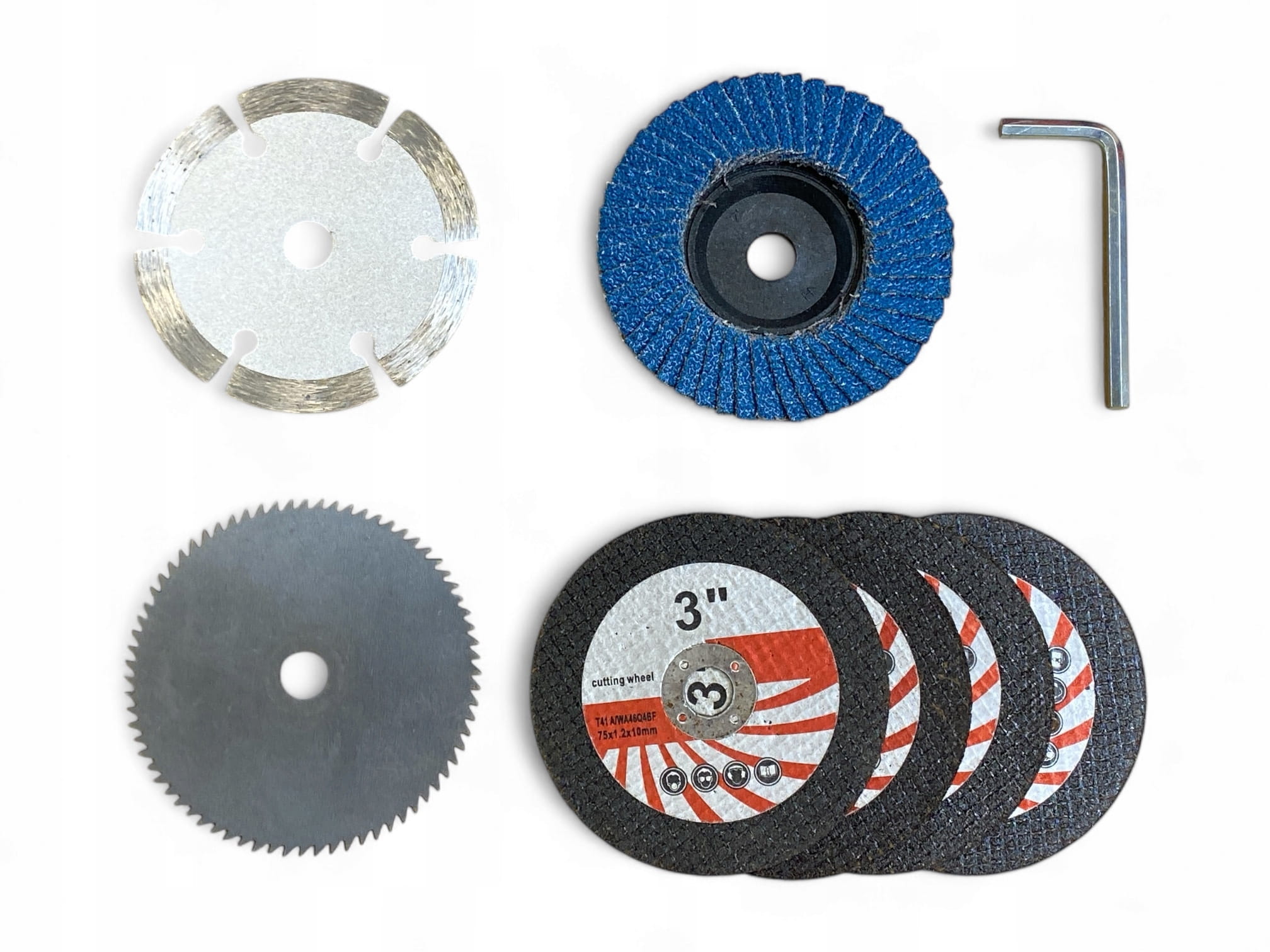 - 7 tarcz (4 do metalu, 1 do betonu, 1 polerska, 1 do drewna)