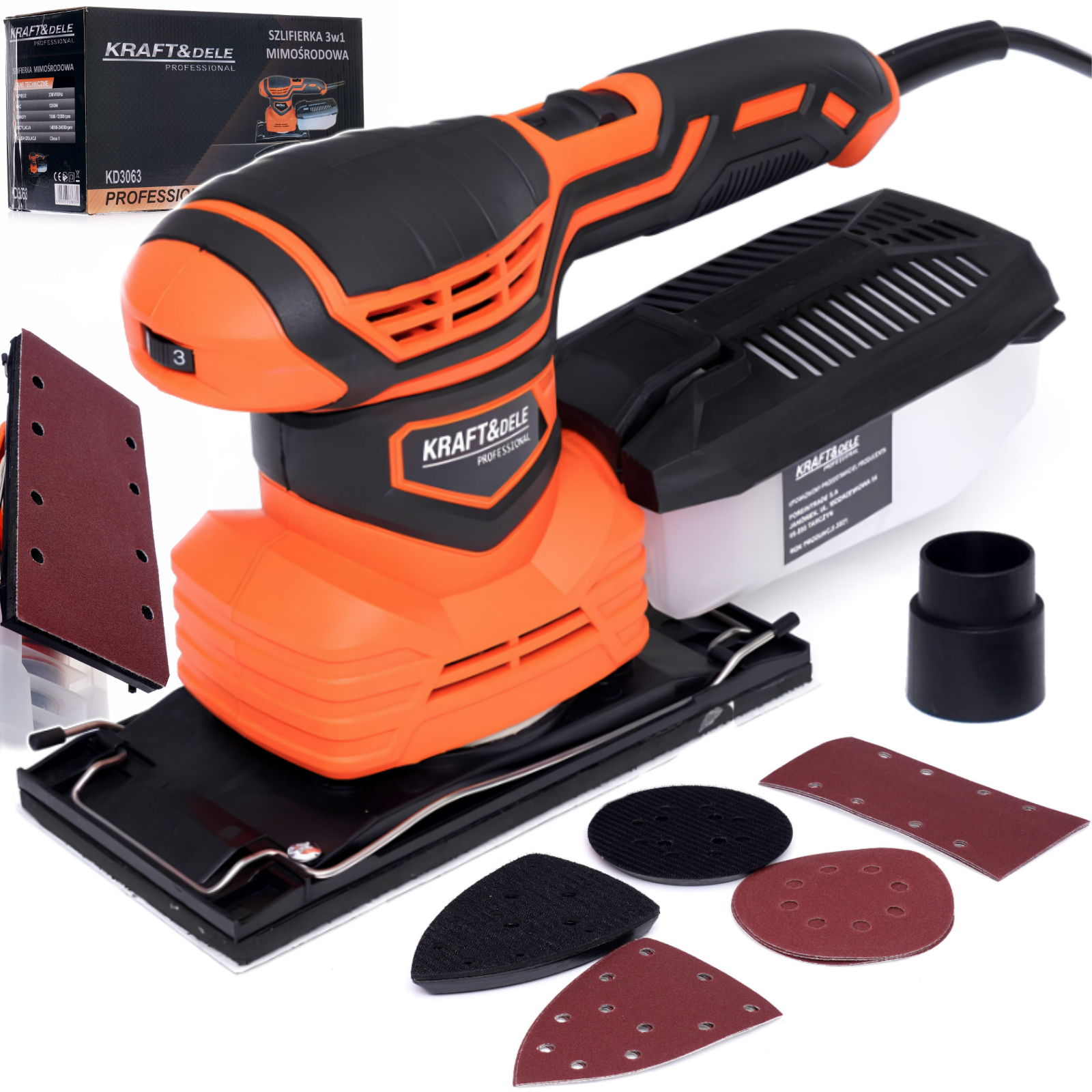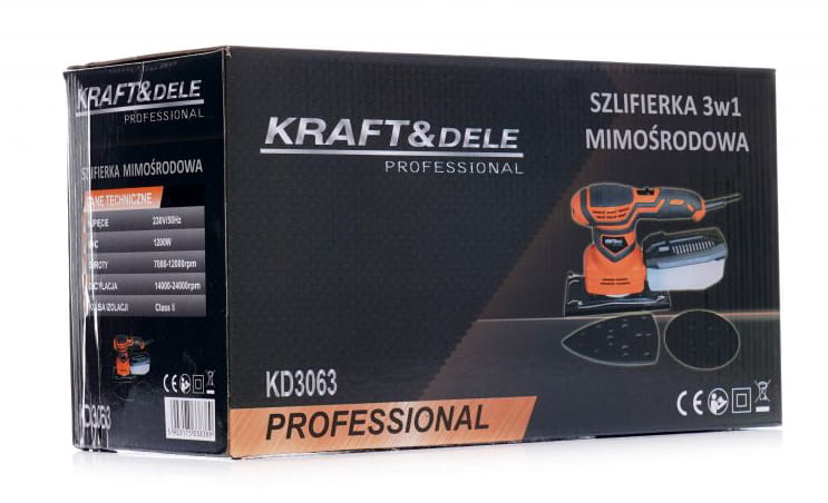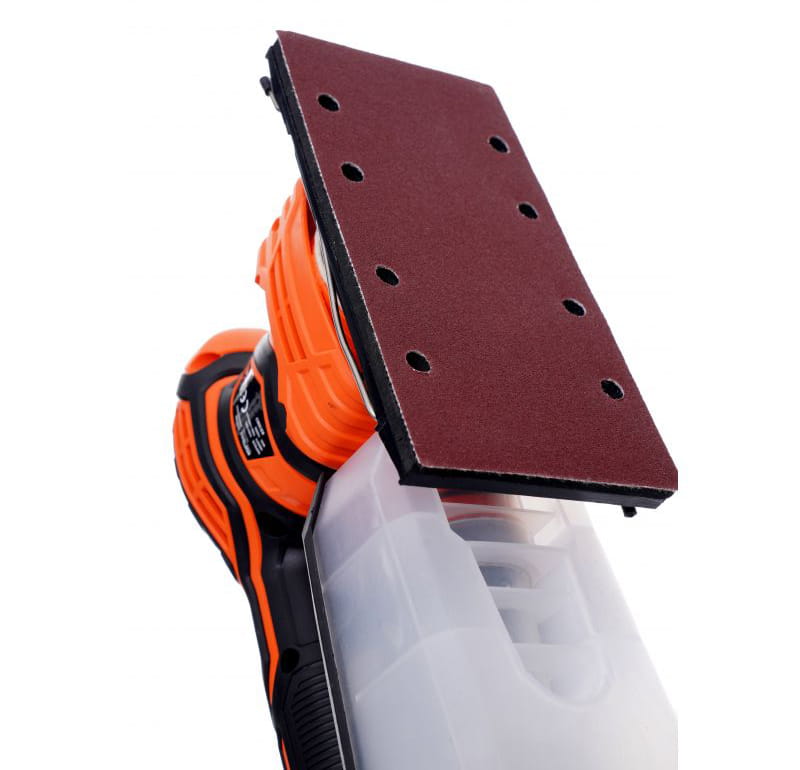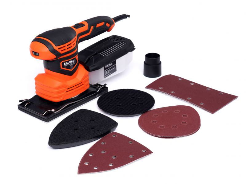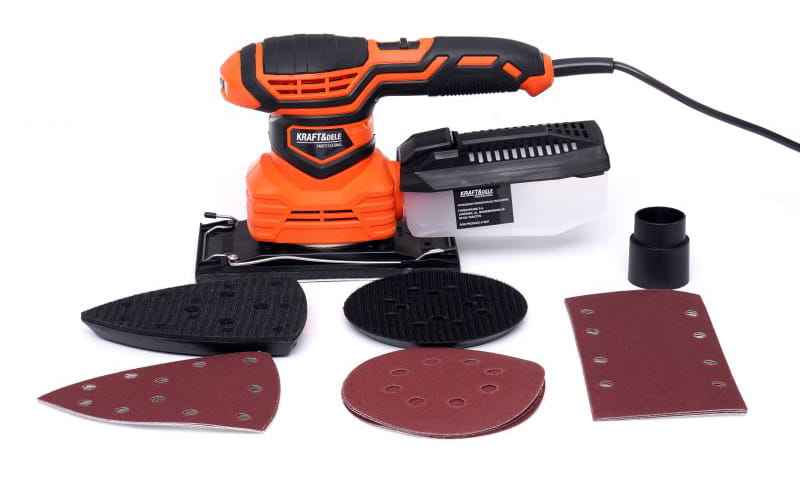 W celu szlifowania wielofunkcyjnego - mimośrodowego i oscylacyjnego szlifierka posiada możliwość zamontowania 3 różnych padów szlifierskich (Orbitalny - do szlifowania płaskich powierzchni; Trójkątny - do szlifowania powierzchni nierównych; Prostokątny - do szlifowania narożników i krawędzi).