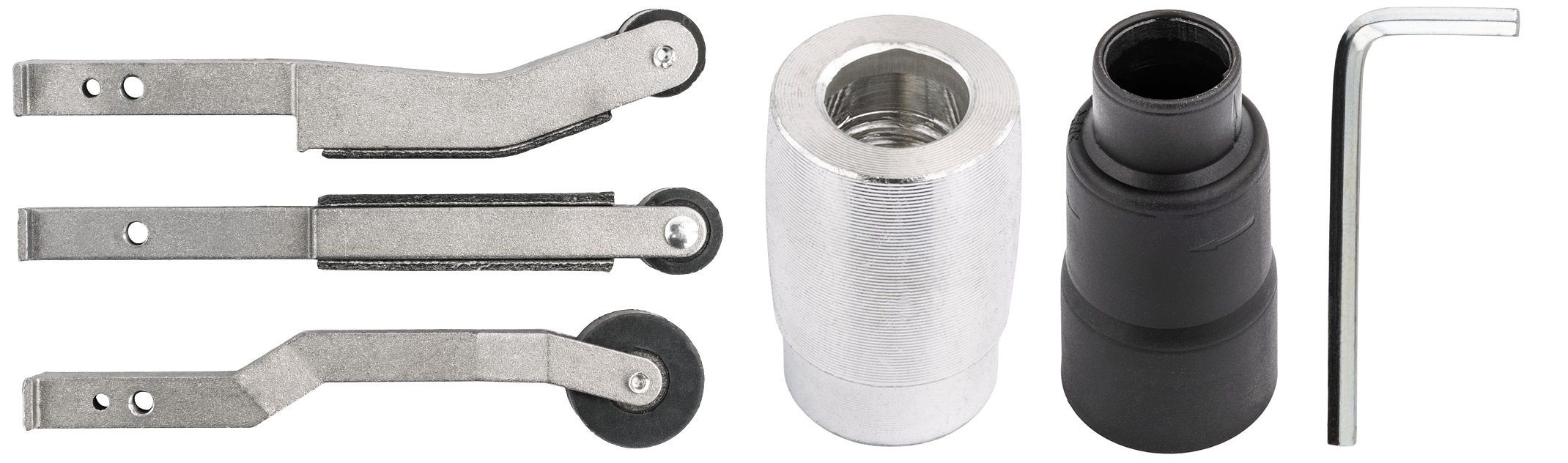 Adapter został zaprojektowany w sposób umożliwiający szybki montaż i demontaż, przy minimalnej liczbie elementów montażowych. Ułatwia to zmianę konfiguracji oraz skraca czas przygotowania do pracy. Stabilna konstrukcja zapewnia pewne trzymanie taśmy i kontrolę nad narzędziem, co przekłada się na precyzyjne i powtarzalne efekty obróbki.