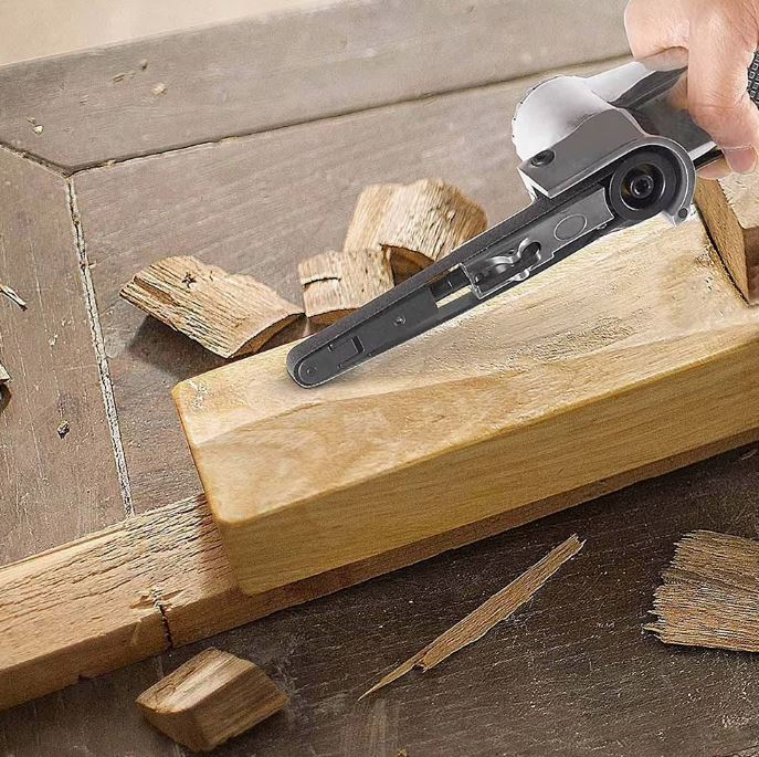 Kompaktowa konstrukcja narzędzia umożliwia wygodną pracę w miejscach o ograniczonej przestrzeni. Regulowana głowica robocza pozwala dopasować ustawienie taśmy ściernej do kształtu obrabianej powierzchni, co ułatwia pracę przy skomplikowanych elementach konstrukcyjnych.
