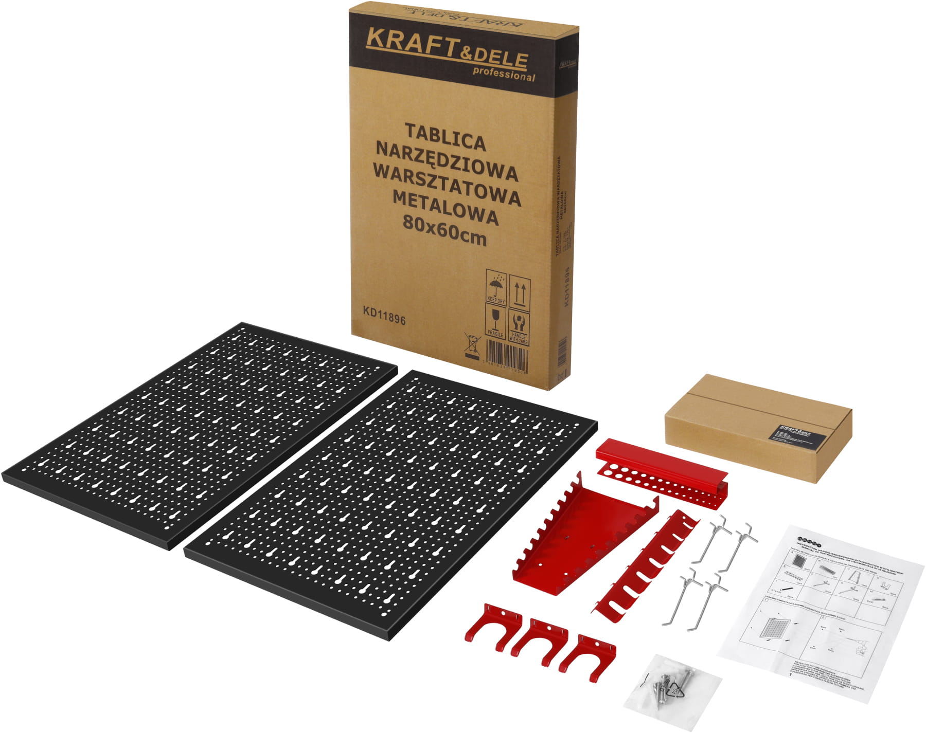 Duża powierzchnia o wymiarach 80 × 60 cm pozwala na przechowywanie wielu elementów jednocześnie, a możliwość dowolnej konfiguracji uchwytów umożliwia dostosowanie układu do indywidualnych potrzeb.