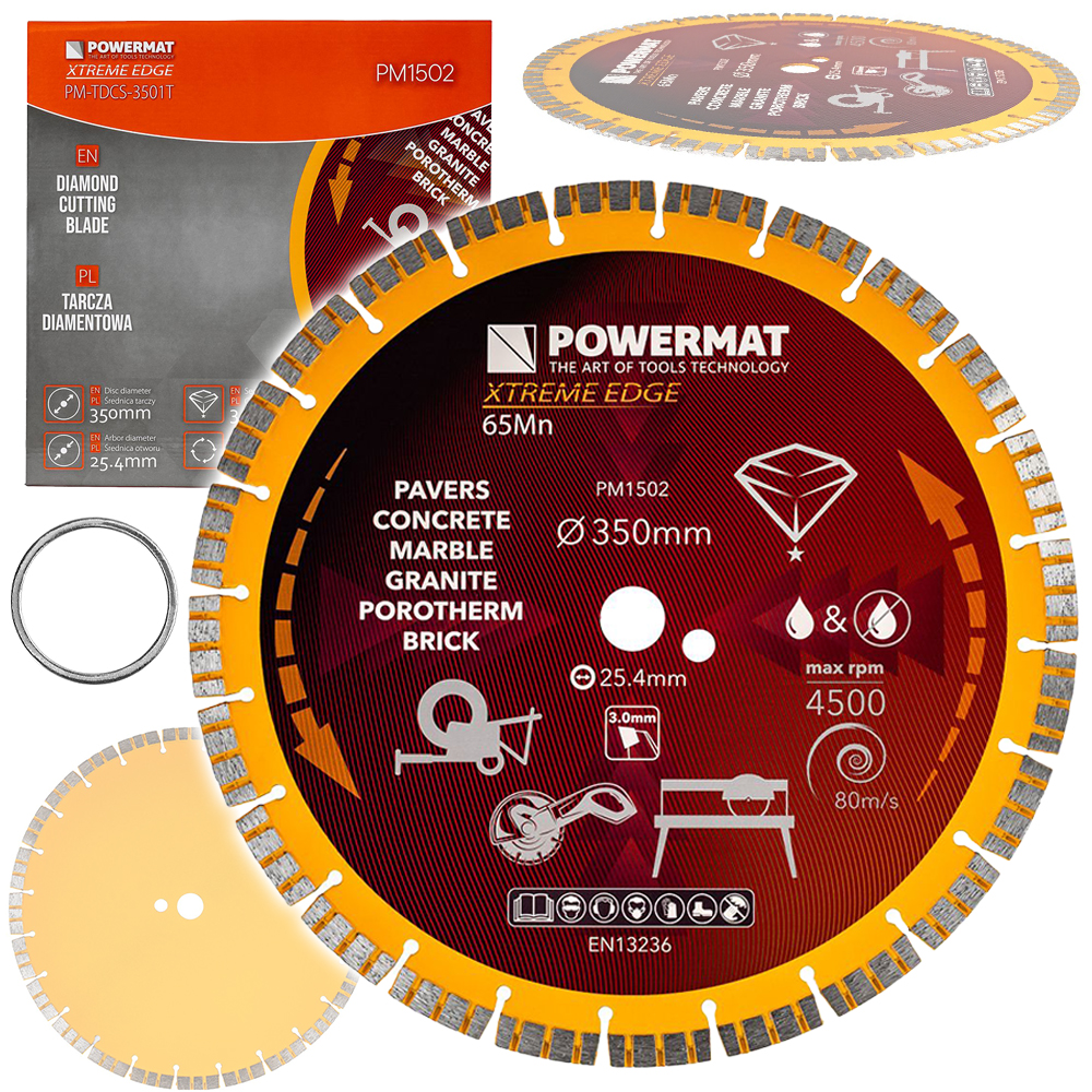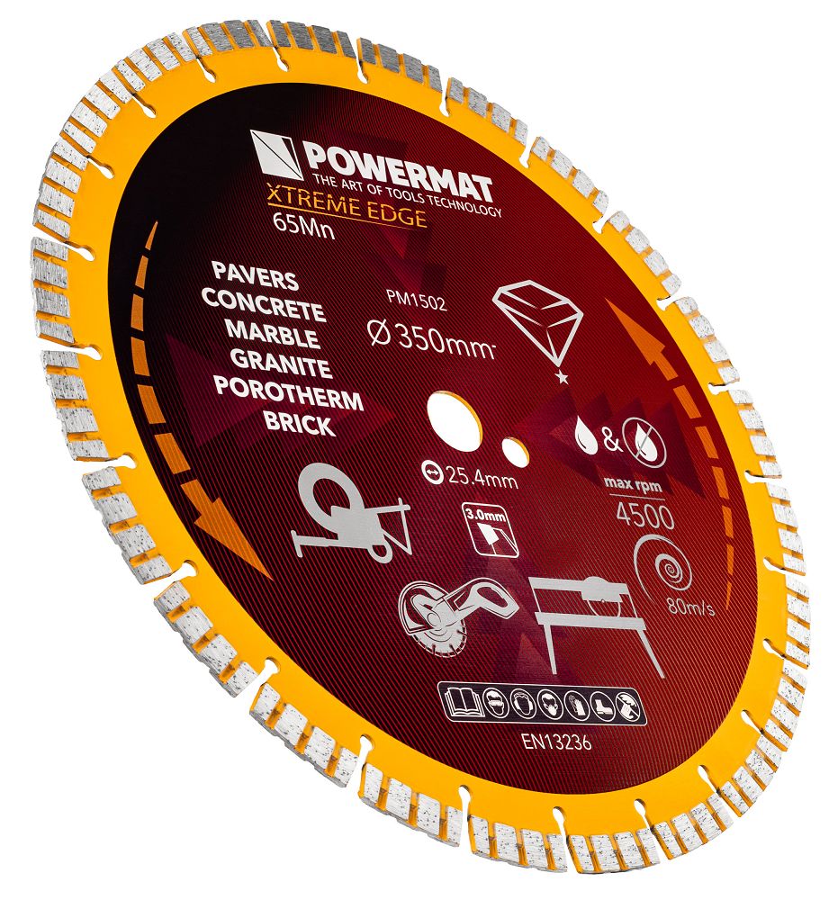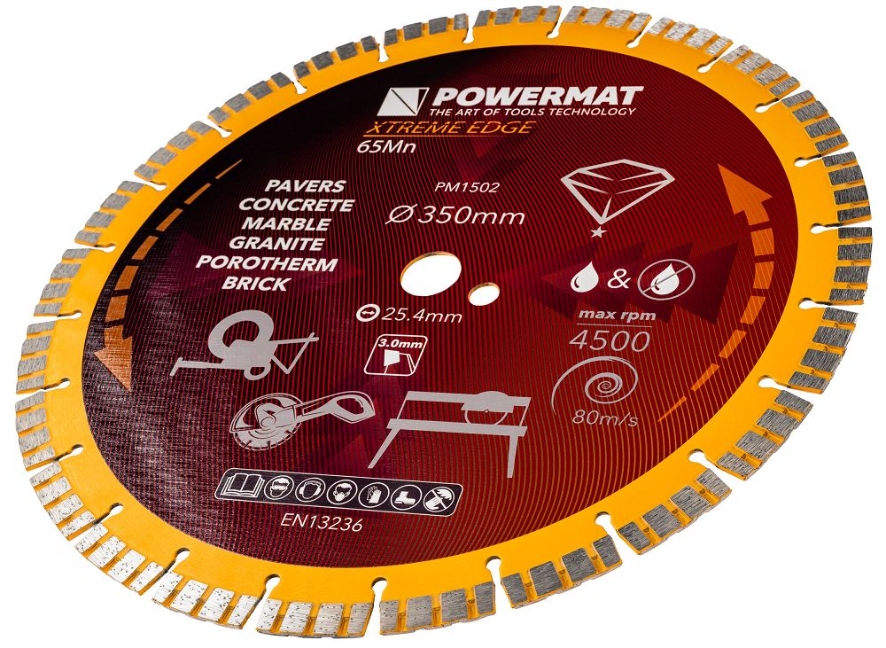 - Przeznaczenie: ceramika, granit, gres, beton, cegła, kostka brukowa, gips, asfalt, bazalt, porotherm