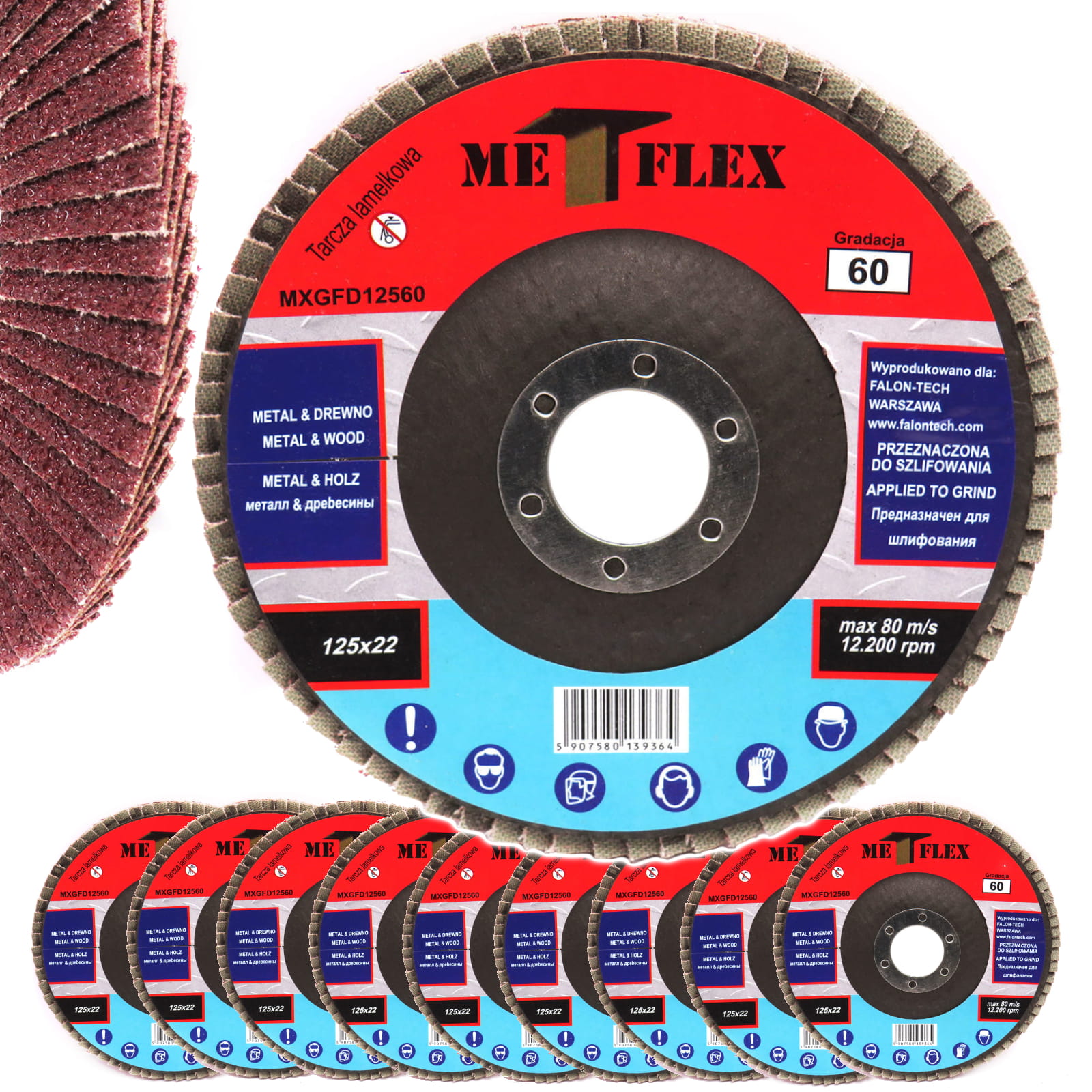 TARCZA LISTKOWA LAMELKOWA INOX 125mm P60 MET-FLEX 10 SZTUK