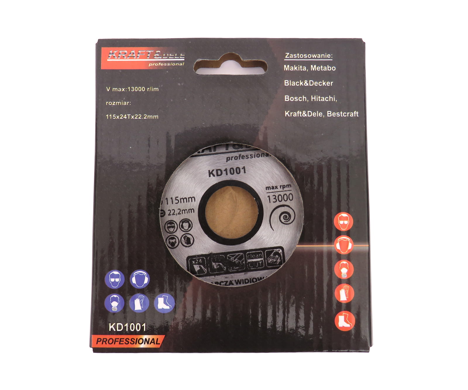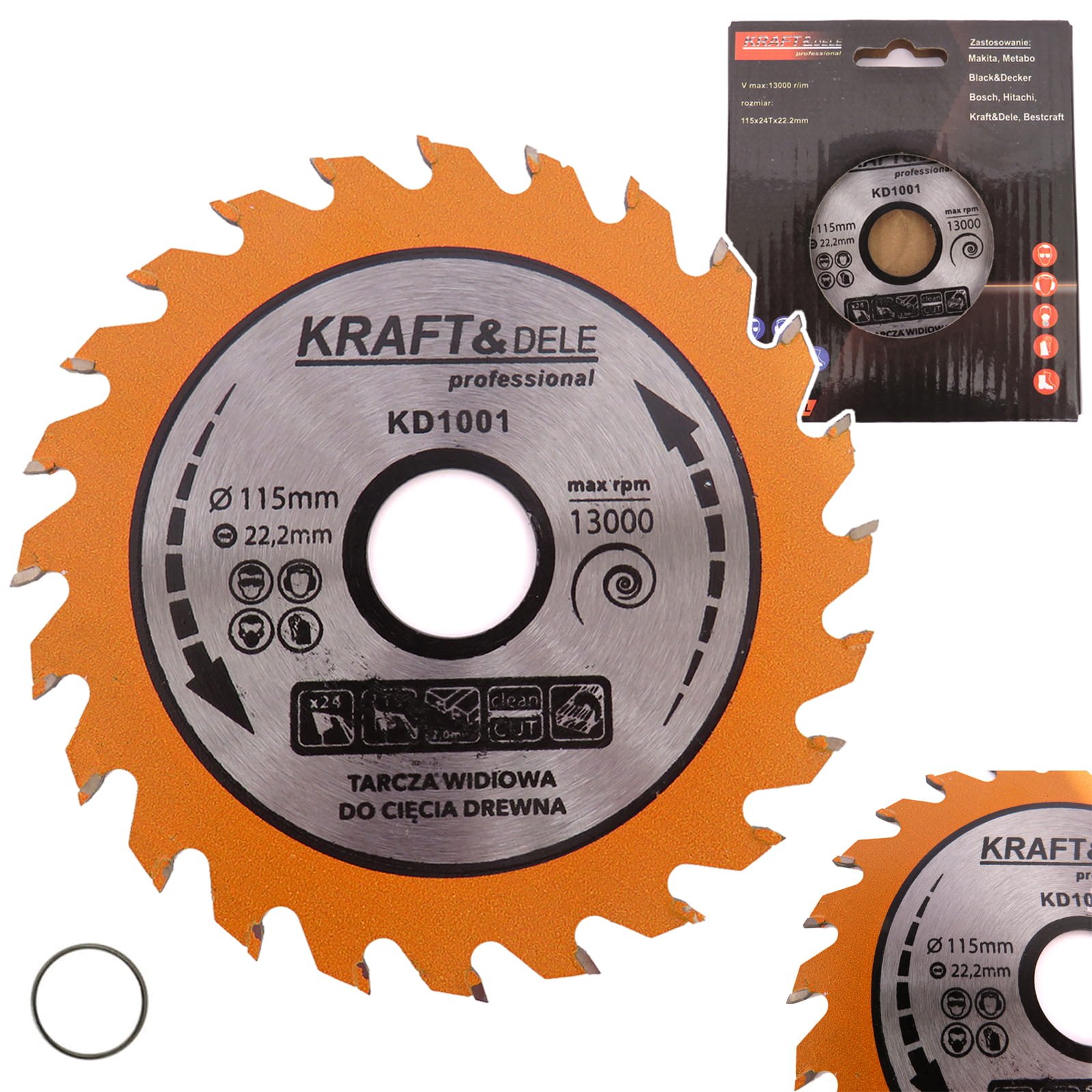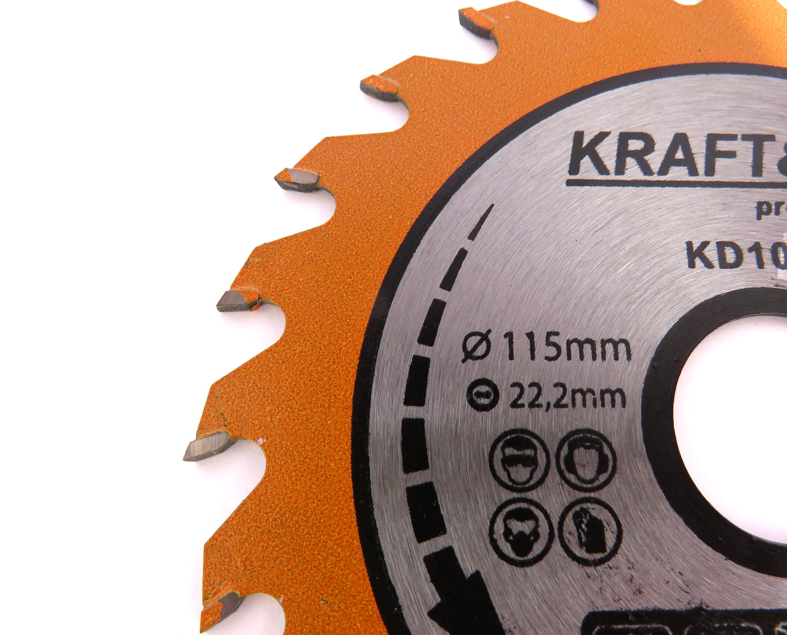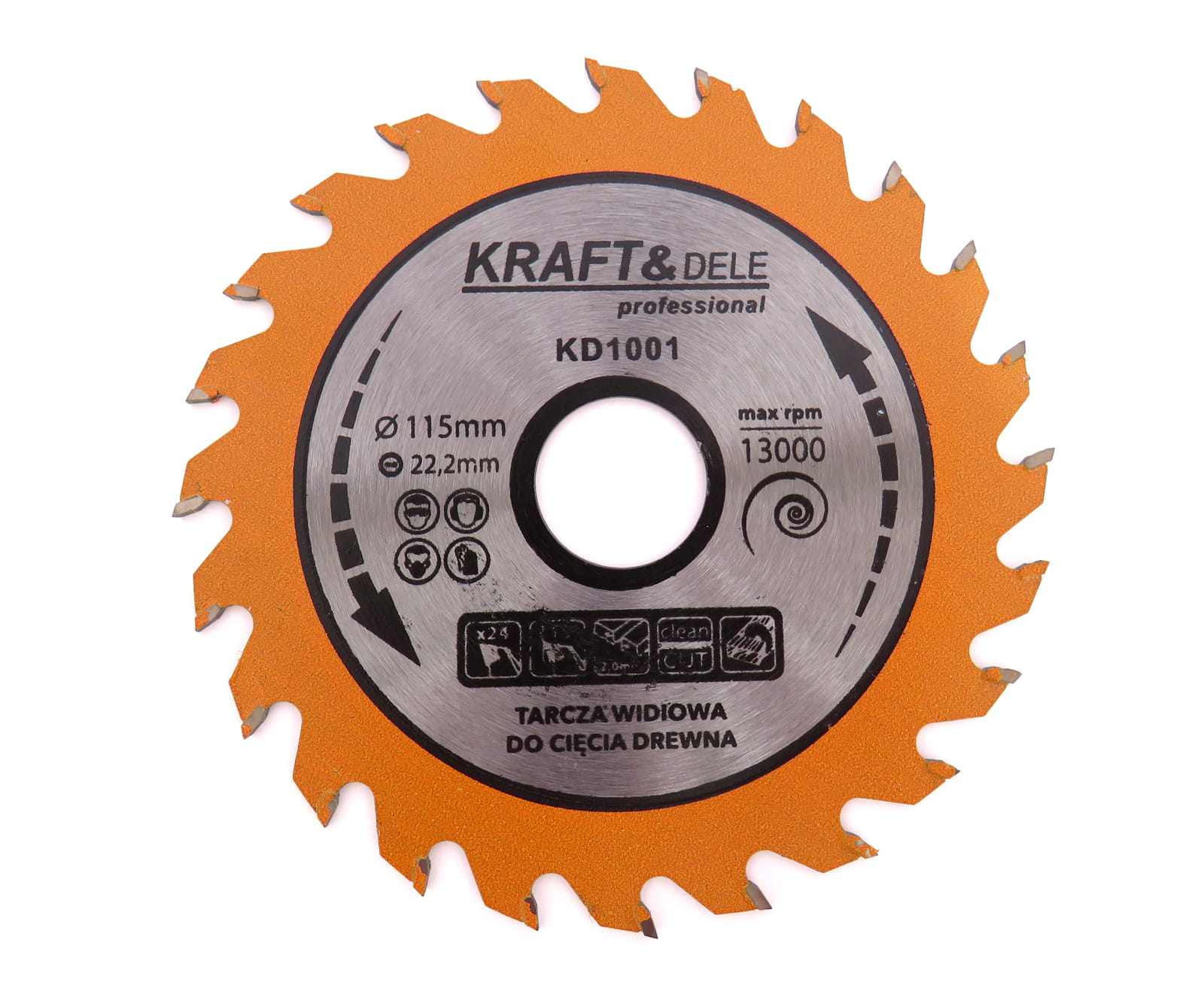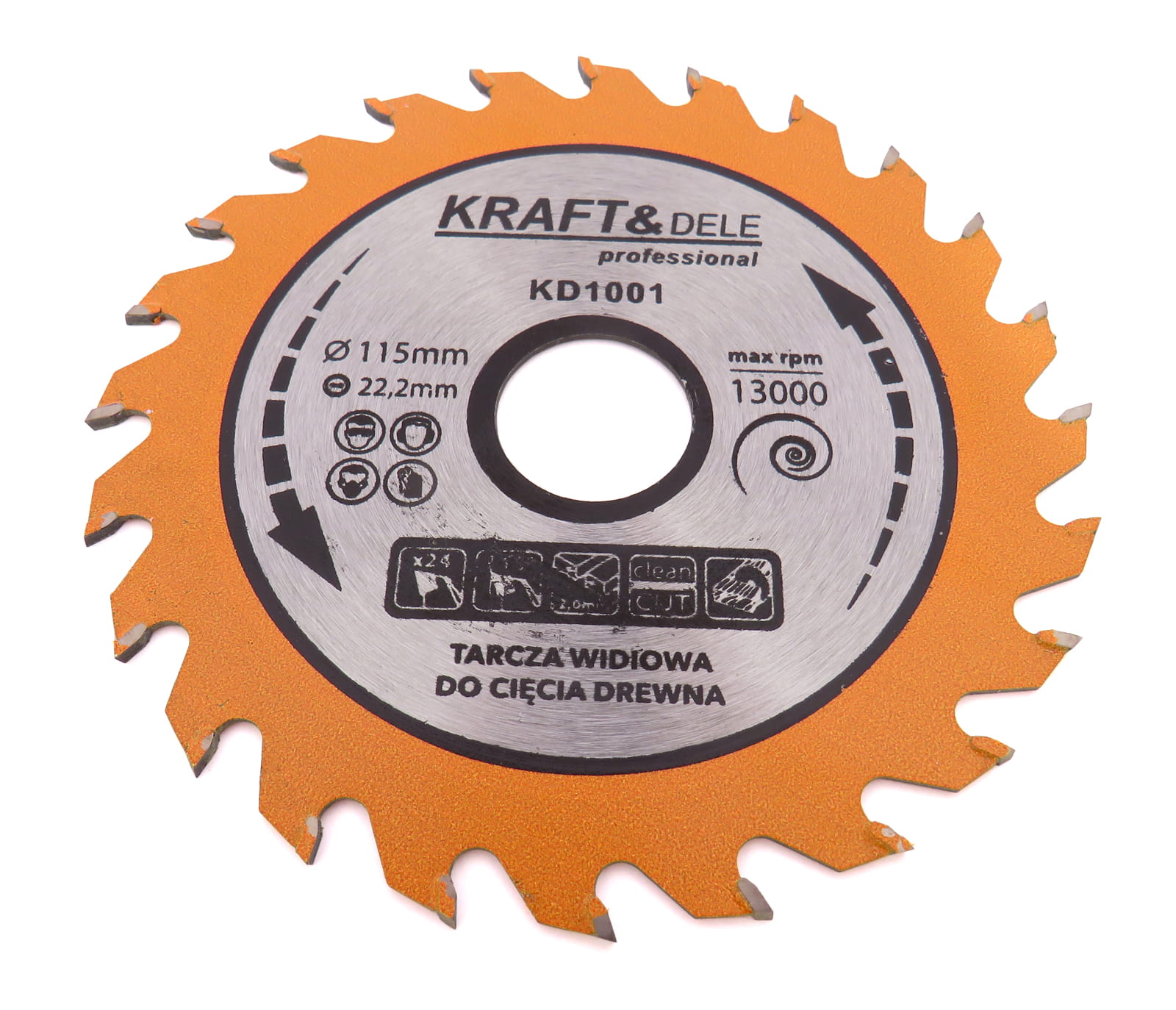Tarcza KRAFT&DELE służy do cięcia drewna, wszystkich materiałów drewnopodobnych, w tym sklejek, płyt, desek, pni czy gałęzi, oraz miękkich materiałów. Przystosowana została do bardzo szybkich obrotów co gwarantuje łatwe i szybkie cięcie za jej pomocą.