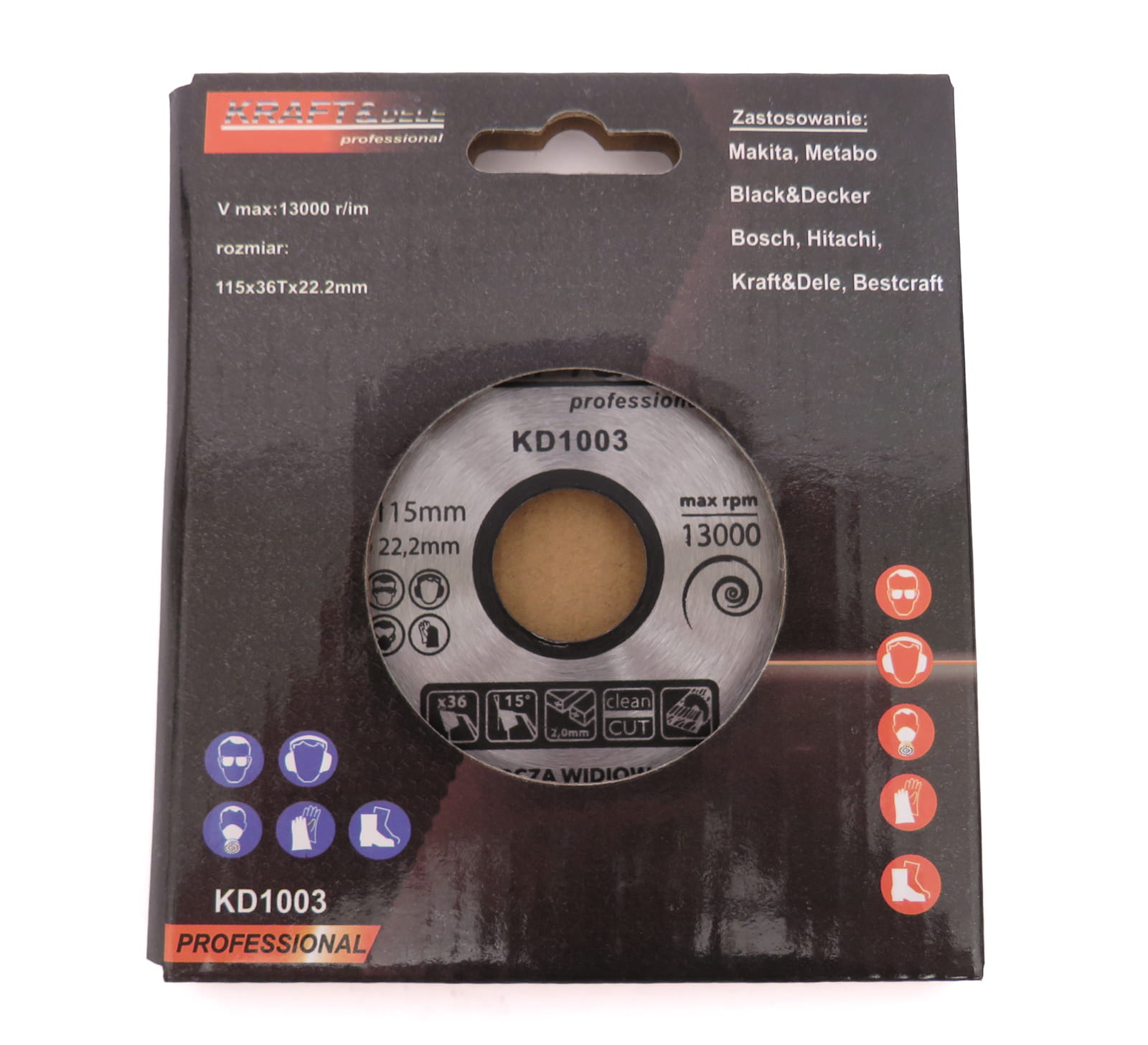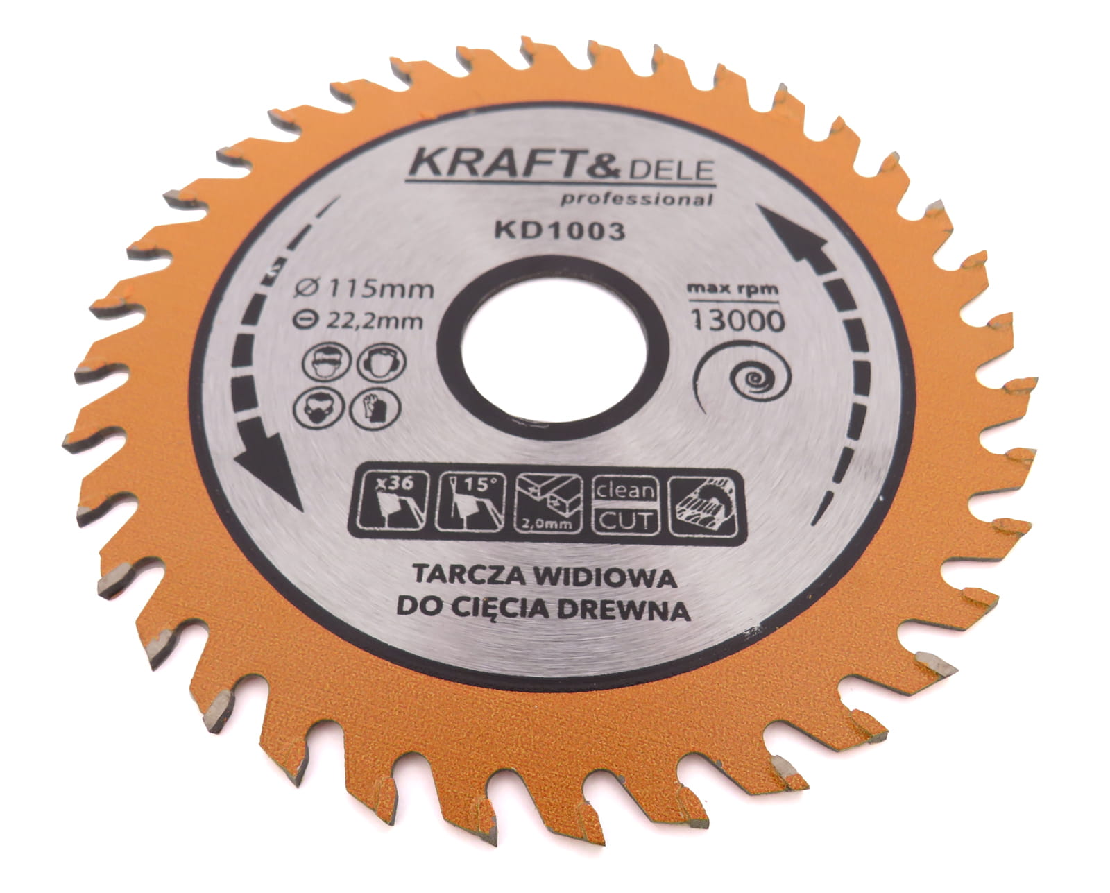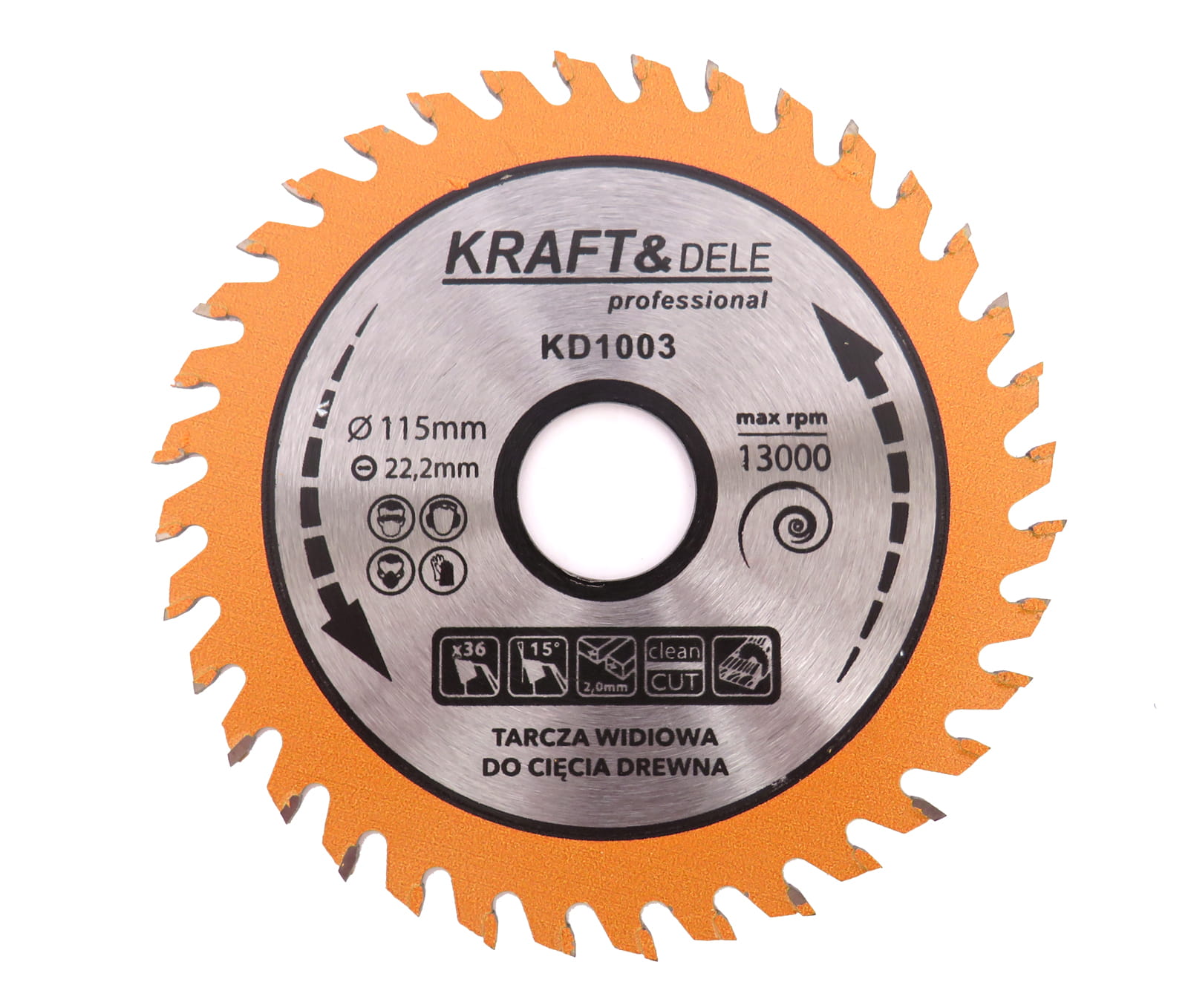 Tarcza KRAFT&DELE służy do cięcia drewna, wszystkich materiałów drewnopodobnych, w tym sklejek, płyt, desek, pni czy gałęzi, oraz miękkich materiałów. Przystosowana została do bardzo szybkich obrotów co gwarantuje łatwe i szybkie cięcie za jej pomocą.
