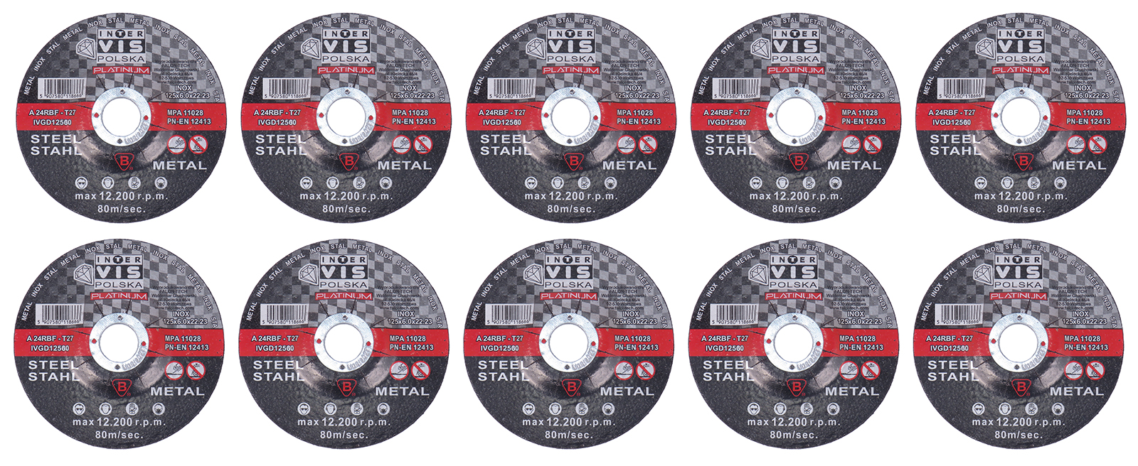 TARCZE TARCZA DO SZLIFOWANIA METALU INOX 125x6.0x22,23mm 10 SZTUK