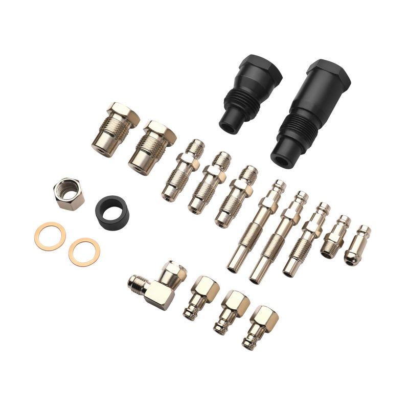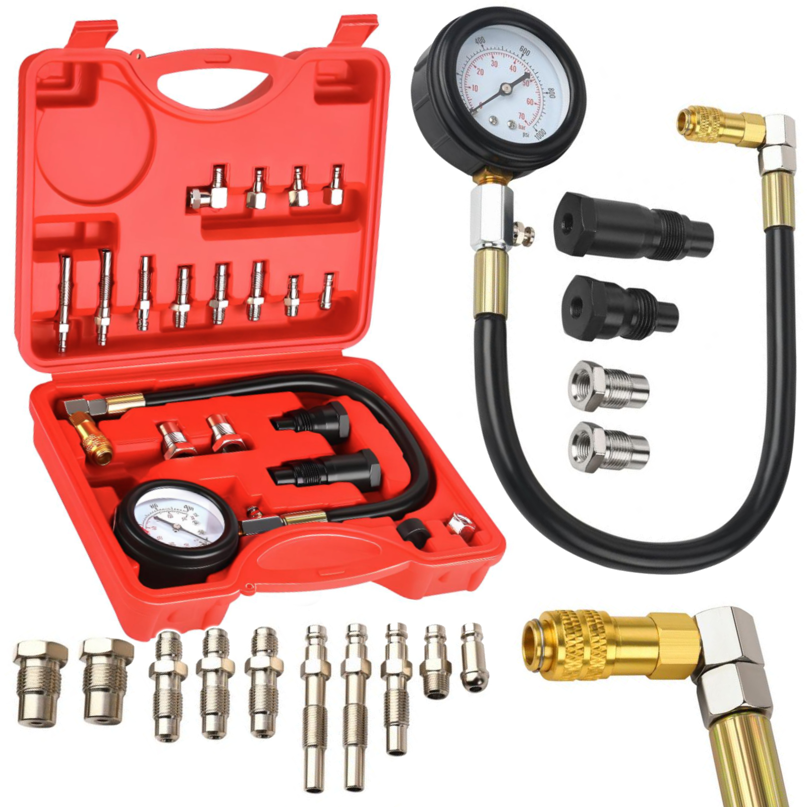 Profesjonalne narzędzie przeznaczone do pomiaru ciśnienia sprężania w cylindrach silników wysokoprężnych. Dzięki szerokiemu zakresowi pomiarowemu (0–70 bar / 0–1000 psi) i bogatemu zestawowi adapterów, urządzenie umożliwia szybki i dokładny pomiar zarówno przez otwory świec żarowych, jak i przez wtryskiwacze. Pasuje do większości pojazdów osobowych, dostawczych i ciężarowych, w tym do silników TDI, HDI, SDI, DTI, JTD, DID z wtryskiem bezpośrednim i pośrednim.