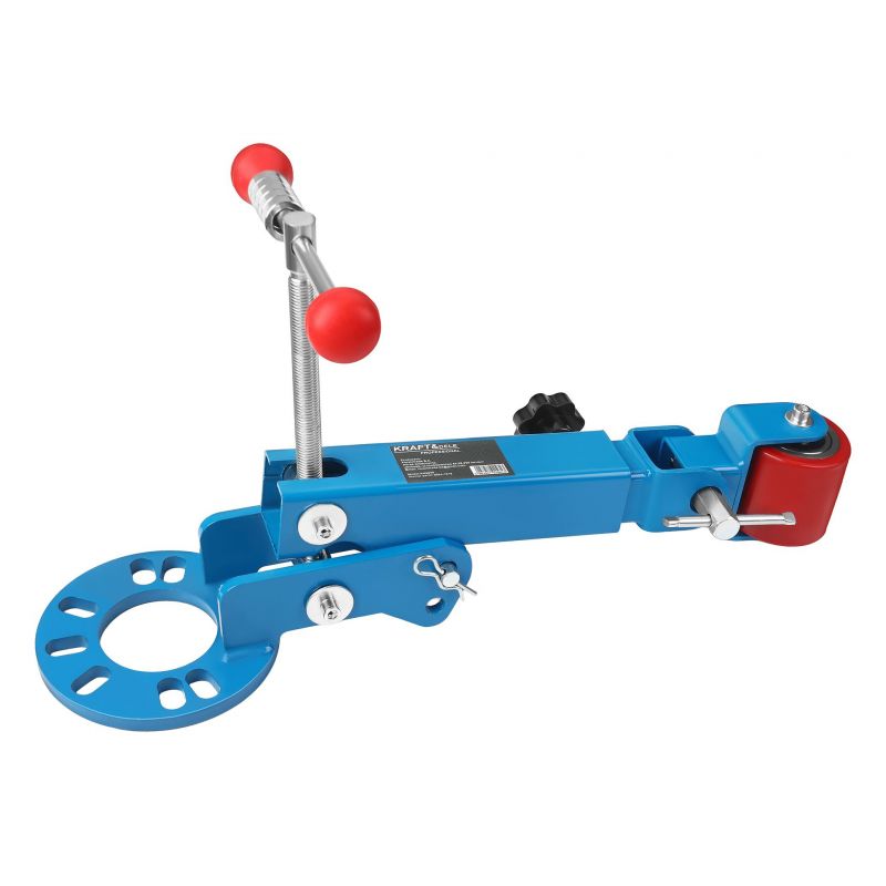 Rolka wyposażona jest w możliwość ustawienia dwóch poziomów nachylenia przy piaście, co pozwala na jeszcze dokładniejsze dopasowanie narzędzia do rodzaju pojazdu. System uniwersalnego mocowania na 4 lub 5 śrub sprawia, że zestaw pasuje do większości felg samochodowych, a dzięki rozsuwanemu ramieniu można regulować odległość i zakres pracy.