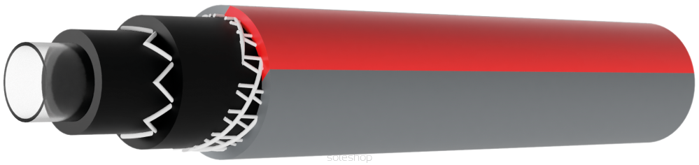 - 6-warstwowy (warstwa wewnętrzna wyprodukowana z surowców przeznaczonych do kontaktu z żywnością, czarna dusza, oplot krzyżowo-trykotowy wykonany z najwyższej jakości przędzy poliestrowej, oblewka kryjąca)