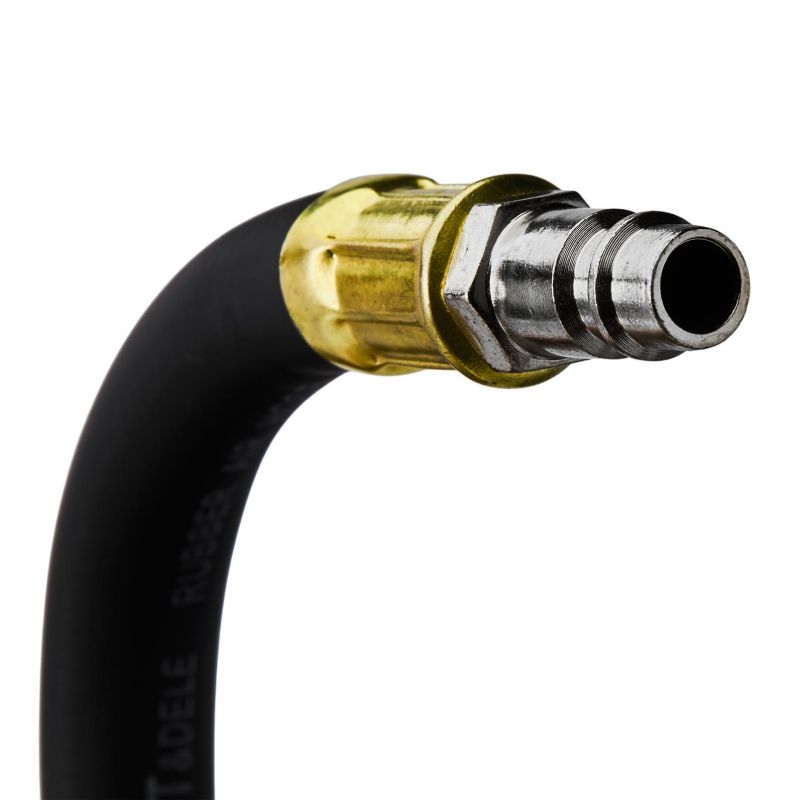 - Szybkie podłączenie – zastosowanie standardowych szybkozłączek umożliwia sprawne podłączenie do kompresora i narzędzi.