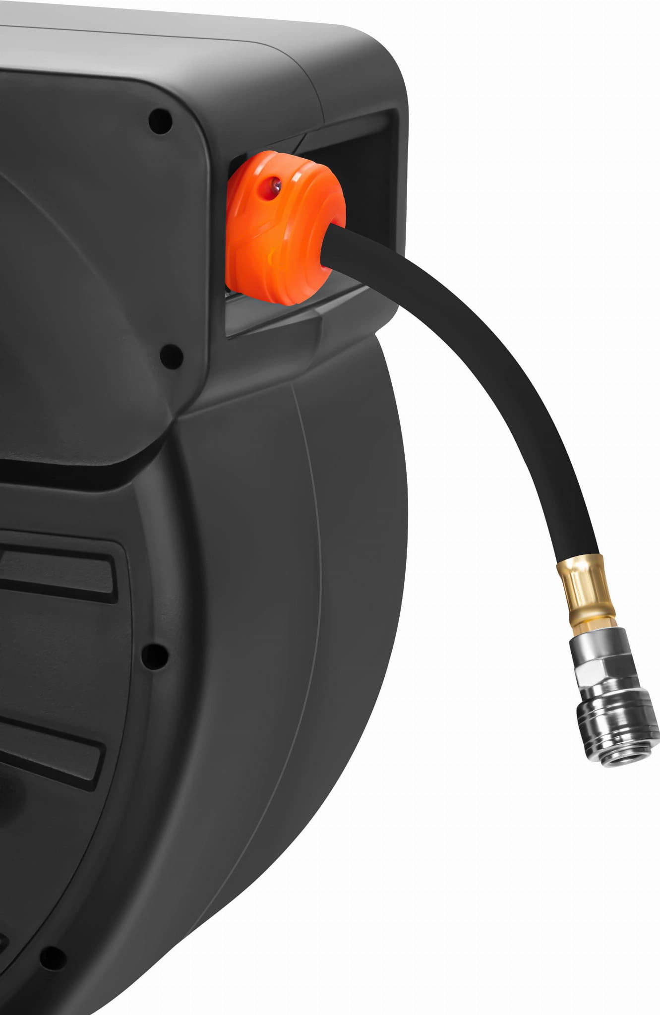 Funkcjonalne rozwiązanie przeznaczone do pracy ze sprężonym powietrzem w środowisku warsztatowym i przemysłowym. Zintegrowany mechanizm zwijania ułatwia organizację przestrzeni roboczej, zwiększa bezpieczeństwo oraz poprawia komfort codziennej pracy. Duża długość przewodu pozwala na swobodne operowanie narzędziami pneumatycznymi bez konieczności częstego zmieniania punktu zasilania.