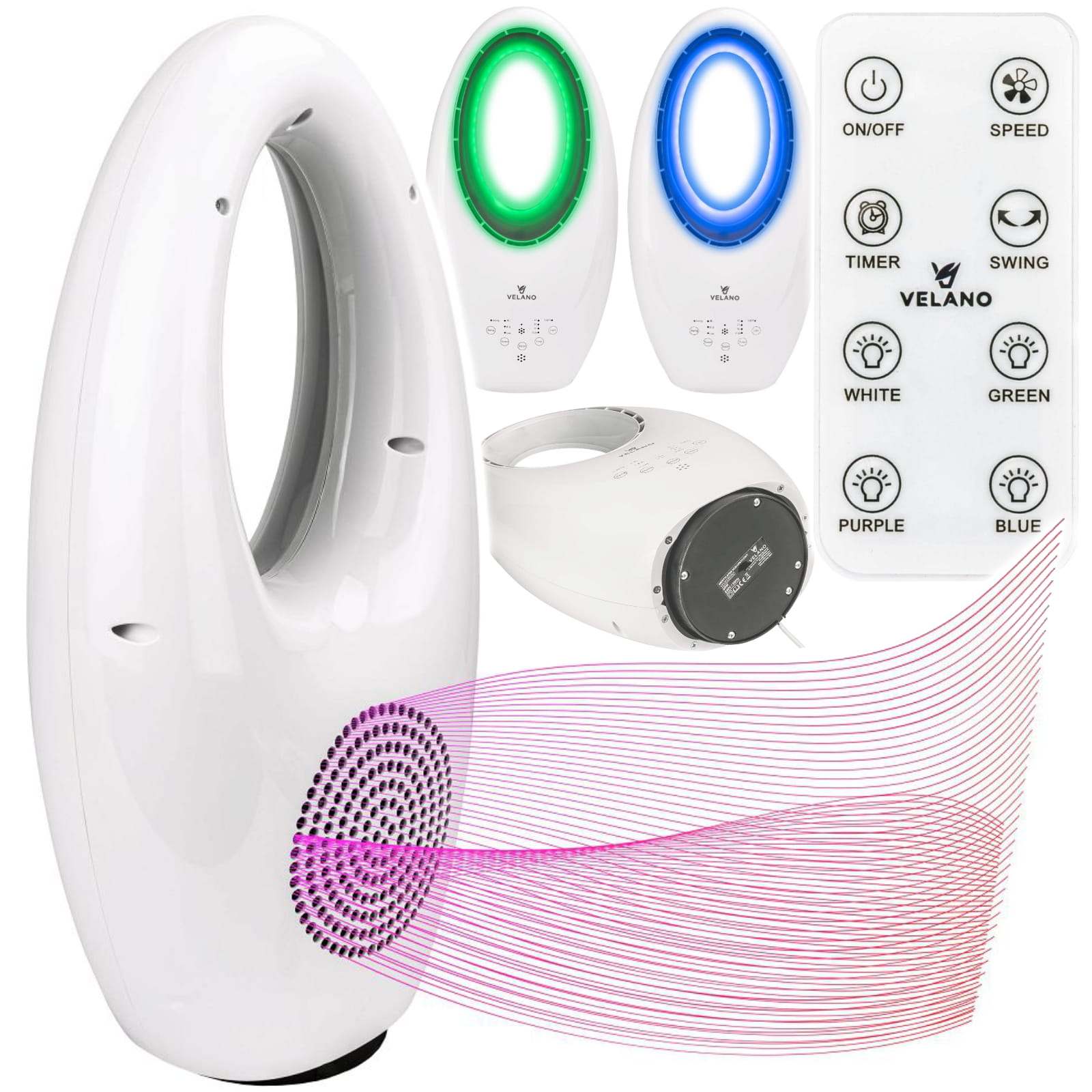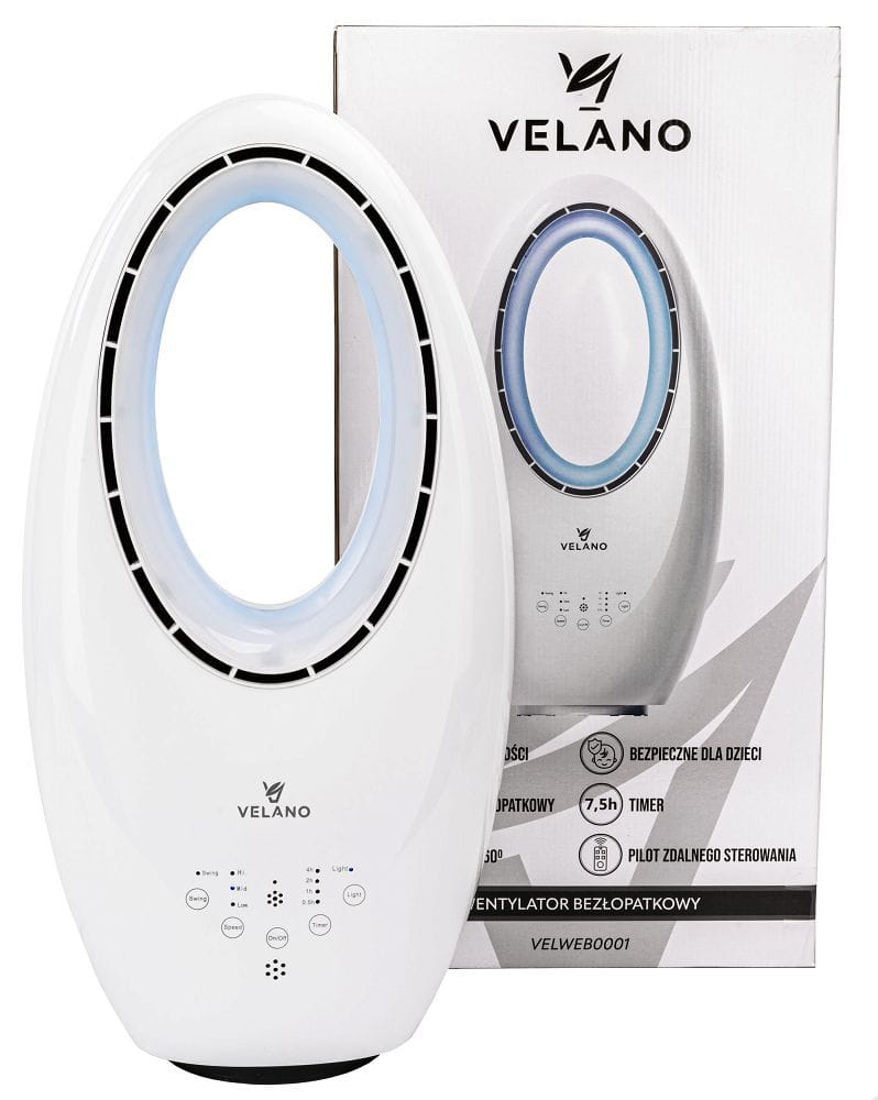 Wentylator bezłopatkowy VELANO to nowoczesne i bezpieczne rozwiązanie na gorące dni. Charakteryzuje się cichą pracą, trzema poziomami prędkości oraz funkcją oscylacji, co gwarantuje równomierne rozprowadzanie powietrza. Dzięki zdalnemu sterowaniu, timerowi i energooszczędnej pracy zapewnia maksymalny komfort użytkowania. Elegancki design z podświetleniem LED doskonale komponuje się z każdym wnętrzem.