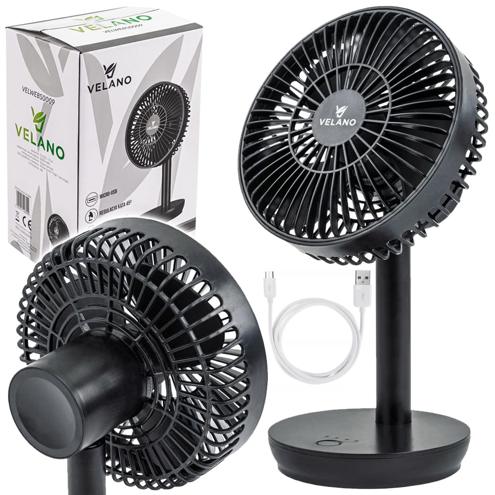 Urządzenie ładowane jest przez złącze micro-USB, co pozwala uzupełniać energię przy pomocy laptopa, powerbanka lub klasycznej ładowarki sieciowej. W zestawie znajduje się przewód o długości 80 cm, dzięki czemu wentylator jest gotowy do użycia zaraz po wyjęciu z pudełka – bez konieczności dokupowania dodatkowych akcesoriów.