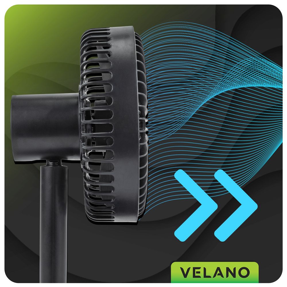 Kompaktowy format sprawia, że urządzenie nie zajmuje dużo miejsca – zmieści się nawet na małym stoliku nocnym, parapecie czy biurku. Gumowe nóżki zapewniają stabilność, zapobiegając przypadkowemu przesuwaniu się wentylatora podczas pracy.