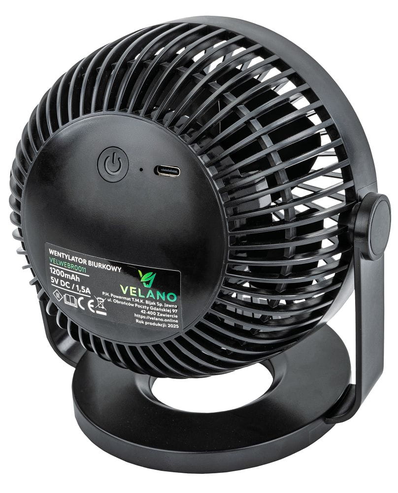 Wentylator ładowany jest przez uniwersalne złącze USB-C. Możliwość podłączenia do laptopa, powerbanka czy ładowarki sieciowej sprawia, że urządzenie można ładować praktycznie wszędzie. Do zestawu dołączono kabel USB-A – USB-C o długości 80 cm.